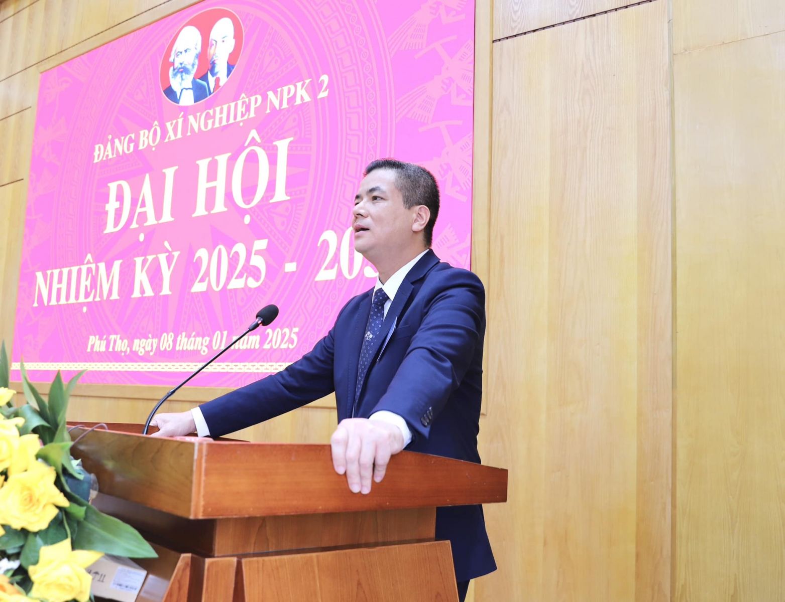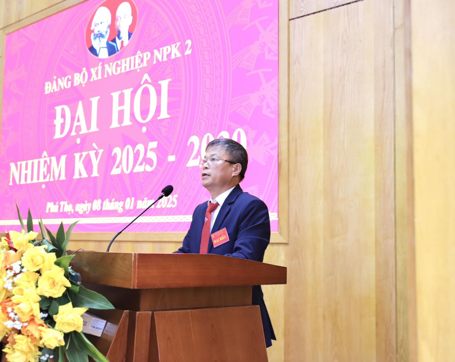 Thay mặt Đảng bộ Công ty phát biểu tại Hội nghị, đồng chí Phạm Thanh Tùng đã biểu dương và chúc mừng những thành tích mà Đảng bộ Xí nghiệp NPK2 đạt được trong nhiệm kỳ vừa qua, góp phần quan trọng vào thành tích chung của Đảng bộ Công ty. Để thực hiện hiệu quả nhiệm vụ trong nhiệm kỳ tới của Đảng bộ Xí nghiệp NPK2, đồng chí Phạm Thanh Tùng nhấn mạnh: Đảng bộ Xí nghiệp NPK2 cần làm tốt công tác lãnh, chỉ đạo thực hiện công tác sản xuất đạt hiệu quả, chất lượng, chú trọng tiết giảm chi phí; tăng cường công tác quản lý, sản xuất gắn với công tác đảm bảo an toàn, môi trường; tạo sự đồng thuận nhất trí trong cán bộ, đảng viên và người lao động; làm tốt công tác xây dựng Đảng và hệ thống chính trị, nâng cao năng lực lãnh đạo, sức chiến đấu của Đảng bộ và các Chi bộ; nêu cao tinh thần trách nhiệm, phát huy dân chủ, thực hiện nghiêm túc các quy định của Đảng để bầu ra những cán bộ tiêu biểu, có đủ phẩm chất, năng lực lãnh, chỉ đạo tham gia vào Ban chấp hành khoá mới và bầu đoàn đại biểu đi dự Đại hội Đảng bộ Công ty lần thứ XXVI, nhiệm kỳ 2025-2030.