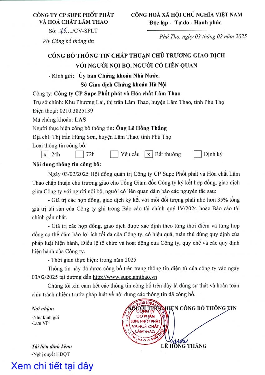 Công bố thông tin chấp thuận chủ trương giao dịch với người nội bộ, người có liên quan