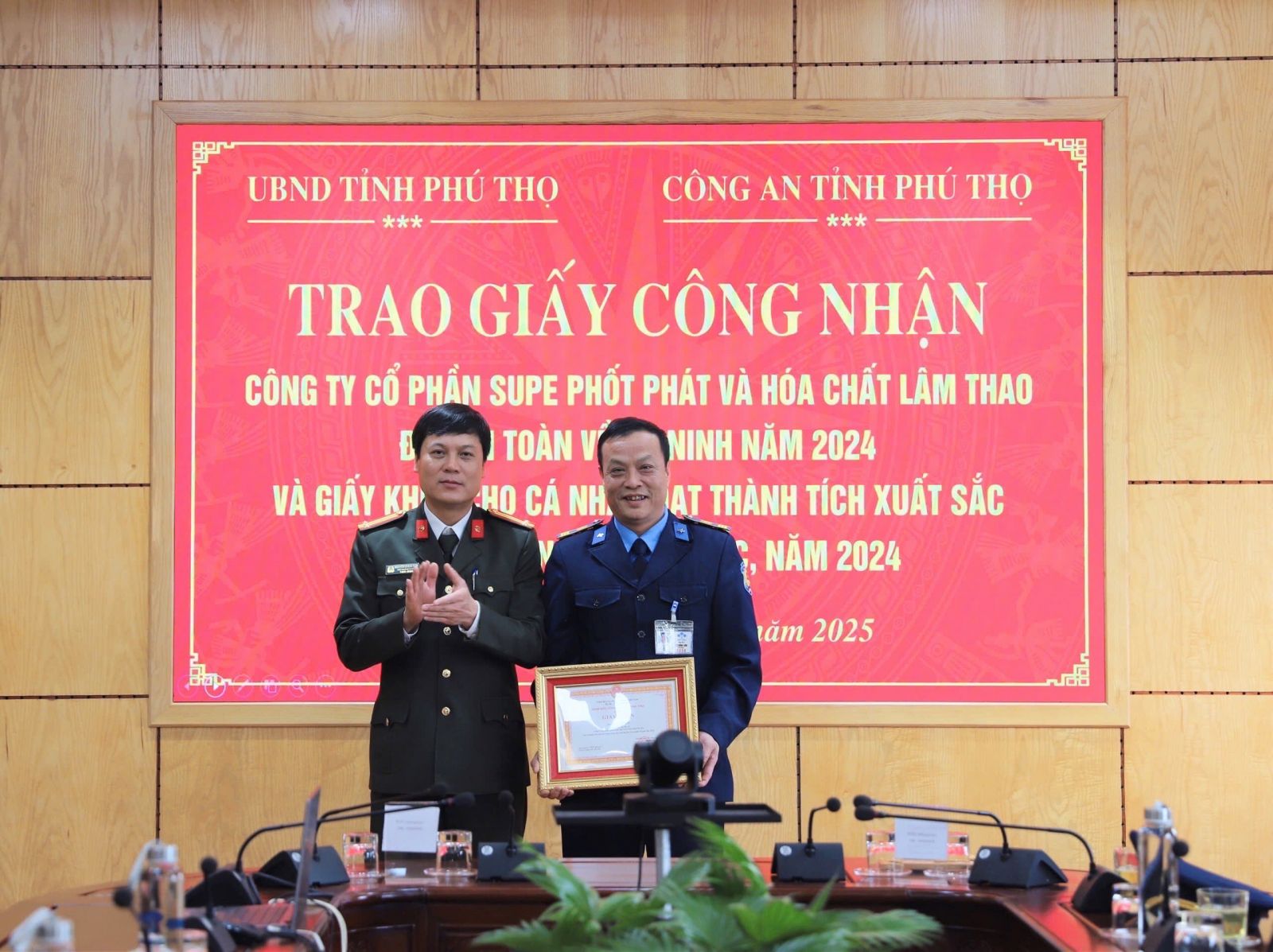 Sáng ngày 21/3/2025, Công ty cổ phần Supe Phốt phát và Hoá chất Lâm Thao vinh dự đón nhận Giấy công nhận đơn vị đạt chuẩn “An toàn về an ninh, trật tự năm 2024 và giấy khen cho cá nhân có thành tích xuất sắc trong phong trào “Toàn dân bảo vệ an ninh Tổ quốc” năm 2024 của Ủy ban nhân dân tỉnh Phú Thọ và Công an tỉnh Phú Thọ.