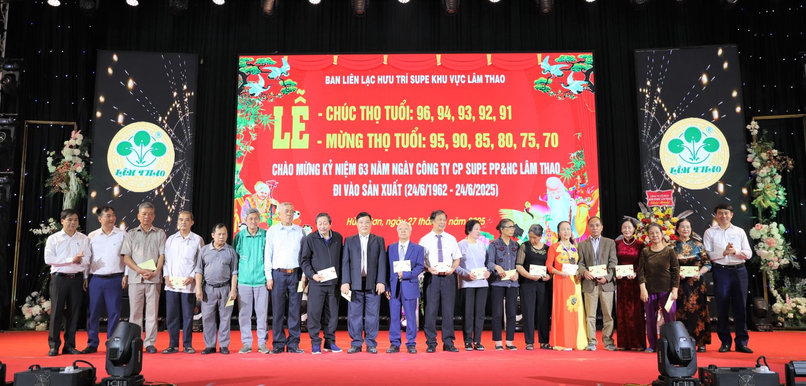 Hướng tới chào mừng kỷ niệm 63 năm ngày Công ty cổ phần Supe Phốt phát và Hoá chất Lâm Thao bước vào sản xuất (24/6/1962 - 24/6/2025), sáng ngày 27 tháng 3 năm 2025, tại Nha đa năng Công ty diễn ra buổi gặp mặt và chúc thọ, mừng thọ hội viên Hội hưu trí Supe khu vực Lâm Thao.