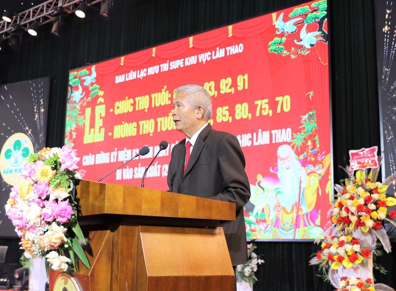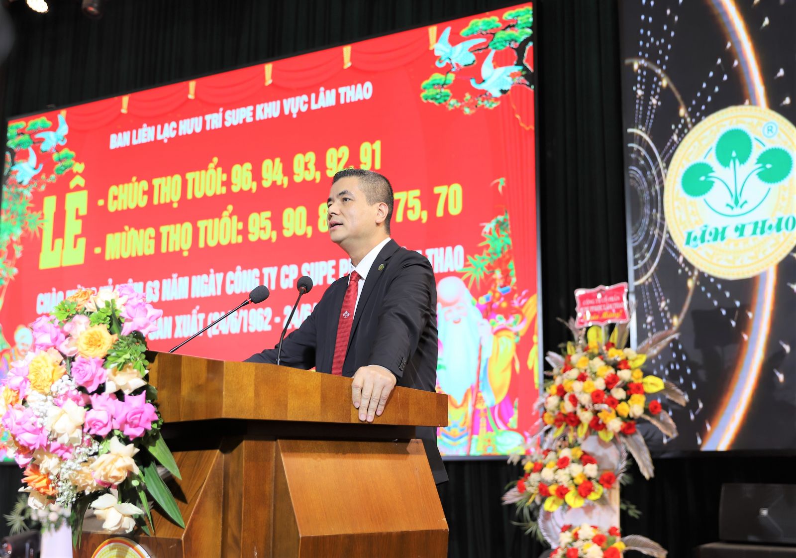 Thay mặt Ban Lãnh đạo Công ty phát biểu, ông Phạm Thanh Tùng, Bí thư Đảng ủy, Tổng Giám đốc trân trọng cảm ơn các bác, các anh, các chị, những người đã góp phần xây dựng nên truyền thống tốt đẹp của Công ty qua các thời kỳ. Đồng thời, thông tin về những thành tích Công ty đạt được trong sản xuất kinh doanh, công tác chăm lo đời sống người lao động, trách nhiệm với ngân sách Nhà nước năm 2024 và định hướng phát triển năm 2025. Nhân dịp này, Tổng Giám đốc chúc toàn thể hội viên Hội hưu trí Supe khu vực Lâm Thao luôn có sức khỏe tốt và tiếp tục quan tâm, đóng góp kinh nghiệm cho Công ty ngày càng phát triển bền vững.