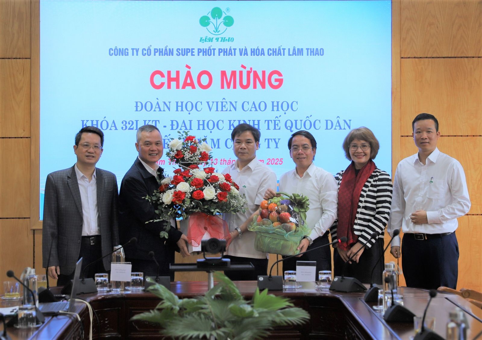 Sáng ngày 13 tháng 4 năm 2025, đoàn học viên lớp cao học khoá 32LTK Trường Đại học Kinh tế Quốc dân do Tiến sĩ Hoàng Xuân Trường, Trưởng khoa Luật làm Trưởng đoàn đã đến tham quan học tập tại Công ty CP Supe Phốt phát và Hoá chất Lâm Thao.