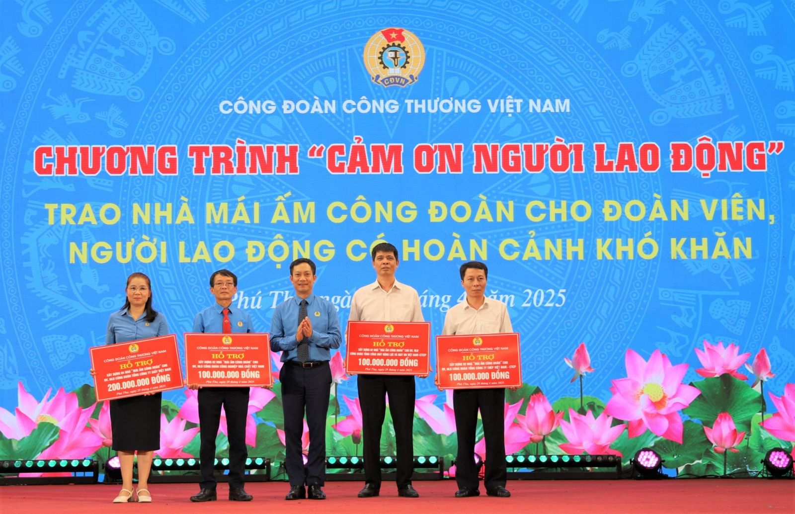 Nhân dịp này, Công đoàn Công Thương Việt Nam đã tặng quà cho 50 đoàn viên, người lao động có hoàn cảnh đặc biệt khó khăn của công ty cổ phần Supe Phốt phát và Hóa chất Lâm Thao, Công ty Pin Ắc quy Vĩnh Phú, Công đoàn Tổng Công ty Giấy Việt Nam, Công đoàn Xăng dầu Việt Nam mỗi suất trị giá 2 triệu đồng; tặng 500 triệu đồng hỗ trợ kinh phí làm 10 nhà "Mái ấm công đoàn", mỗi nhà 50 triệu đồng. Chương trình cũng đã biểu dương 40 công nhân, lao động tiêu biểu ngành Công thương đã có thành tích xuất sắc trong phong trào Lao động giỏi, Lao động sáng tạo.