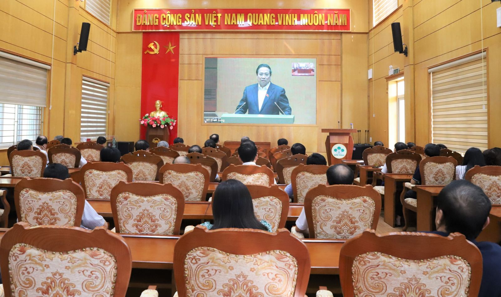 Hội nghị được tổ chức bằng hình thức trực tiếp, kết hợp trực tuyến từ điểm cầu Trung ương (Phòng họp Diên Hồng, Nhà Quốc hội) đến các điểm cầu các địa phương.