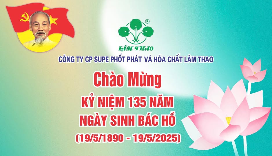 Chào mừng kỷ niệm 135 năm (19/5/1890 - 19/5/2025) Ngày sinh Bác Hồ kính yêu, Công ty cổ phần Supe Phốt phát và Hoá chất Lâm Thao xin thành kính tưởng nhớ và biết ơn sâu sắc công lao to lớn của Bác, đã cống hiến trọn đời mình cho sự nghiệp cách mạng, vì độc lập dân tộc và hạnh phúc của nhân dân.