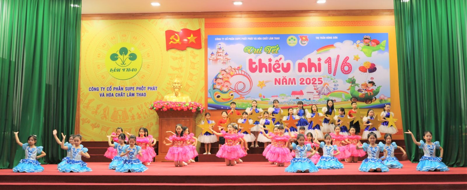 Được sự quan tâm, tạo điều kiện của Ban Lãnh đạo Công ty CP Supe Phốt phát và Hoá chất Lâm Thao, tối ngày 30 tháng 5 năm 2025, Đoàn Thanh niên Công ty phối hợp với Đoàn Thanh niên thị trấn Hùng Sơn tổ chức chương trình “Vui Tết thiếu nhi 01/6" cho các cháu thiếu niên nhi đồng là con em của cán bộ, người lao động Công ty và nhân dân trên địa bàn. Đây là dịp để các bé được vui chơi, kết nối và nhận những phần quà ý nghĩa.