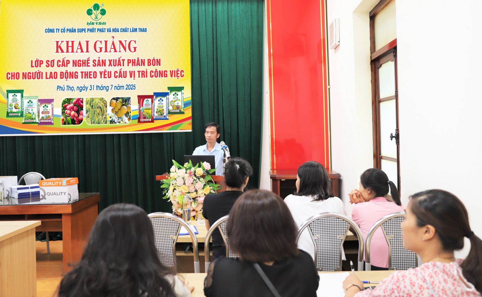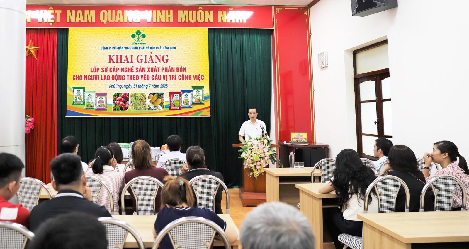 Sáng ngày 31/7/2025, Công ty Cổ phần Supe Phốt phát và Hóa chất Lâm Thao phối hợp với Trường Cao đẳng Công nghiệp Hóa chất long trọng tổ chức lễ khai giảng Lớp sơ cấp nghề sản xuất phân bón năm 2025. Chương trình nhằm nâng cao trình độ tay nghề cho người lao động, góp phần phục vụ hiệu quả hoạt động sản xuất kinh doanh của Công ty.