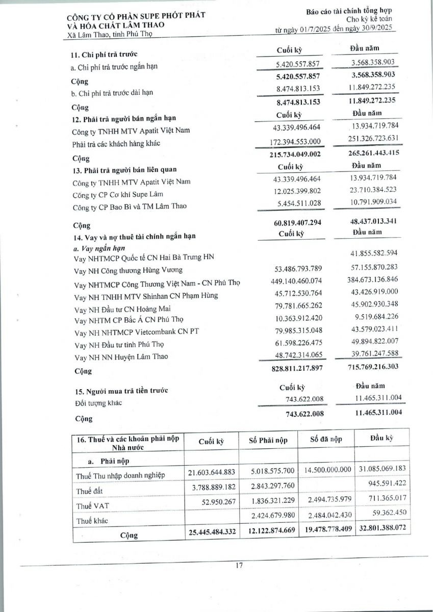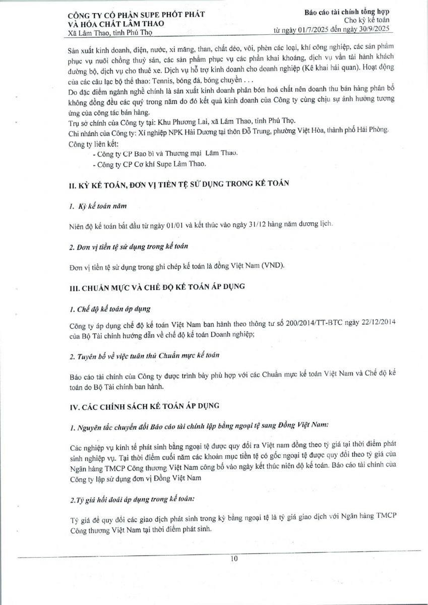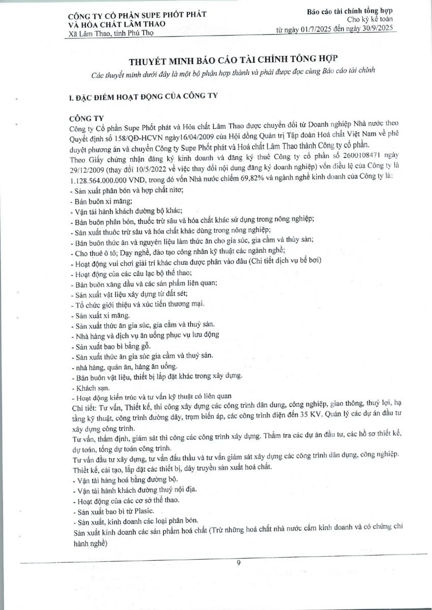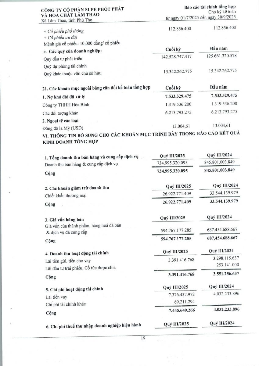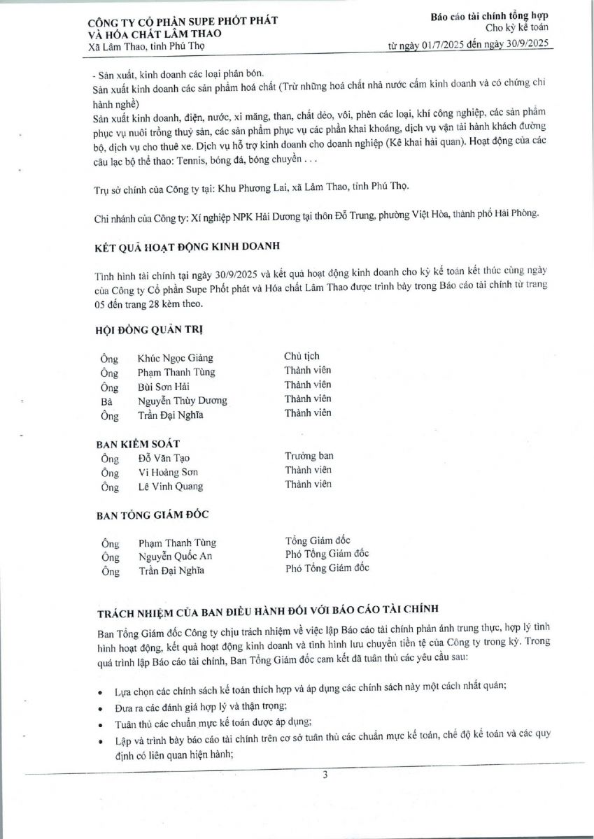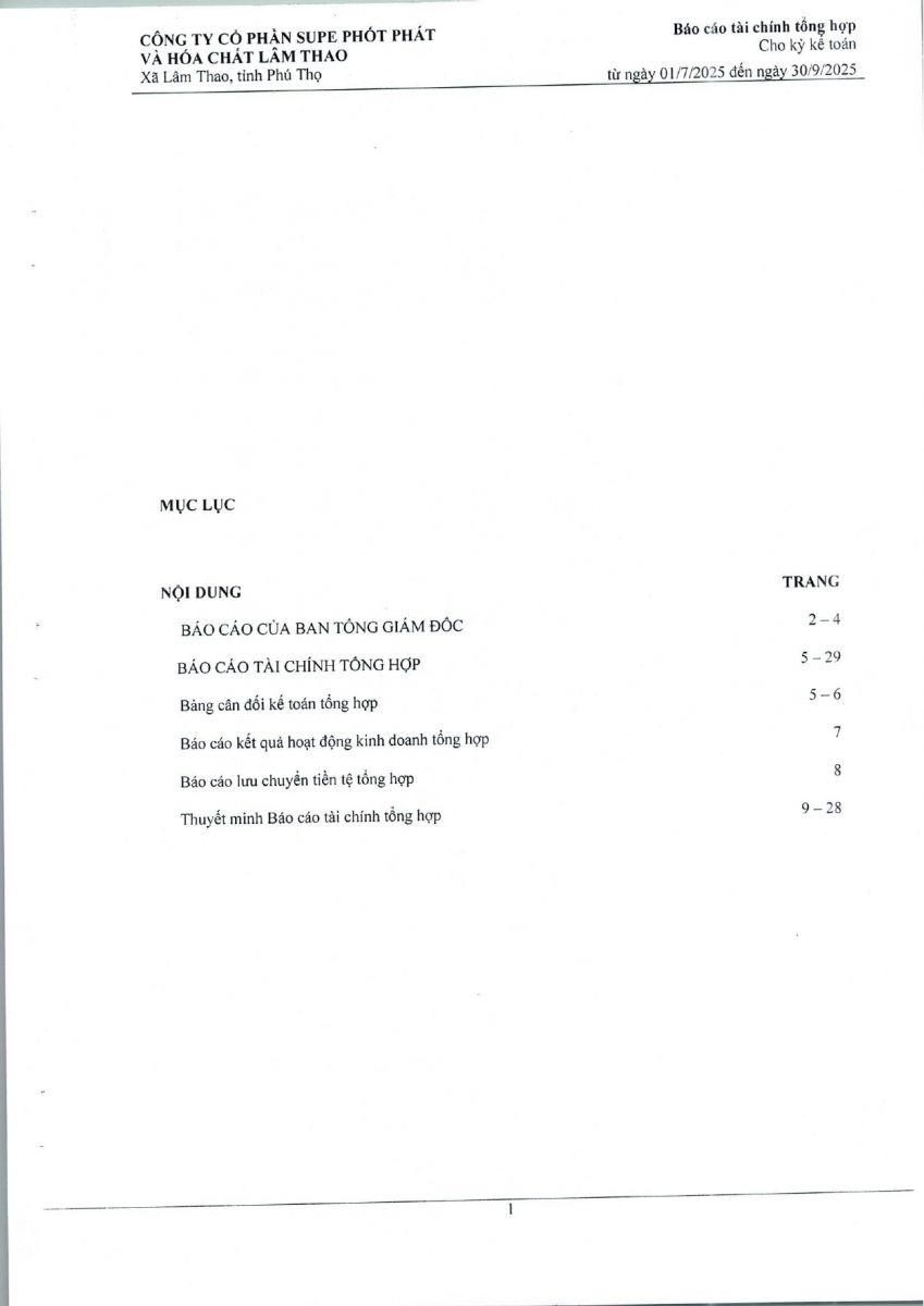 Báo cáo tài chính tổng hợp quý 3 năm 2025