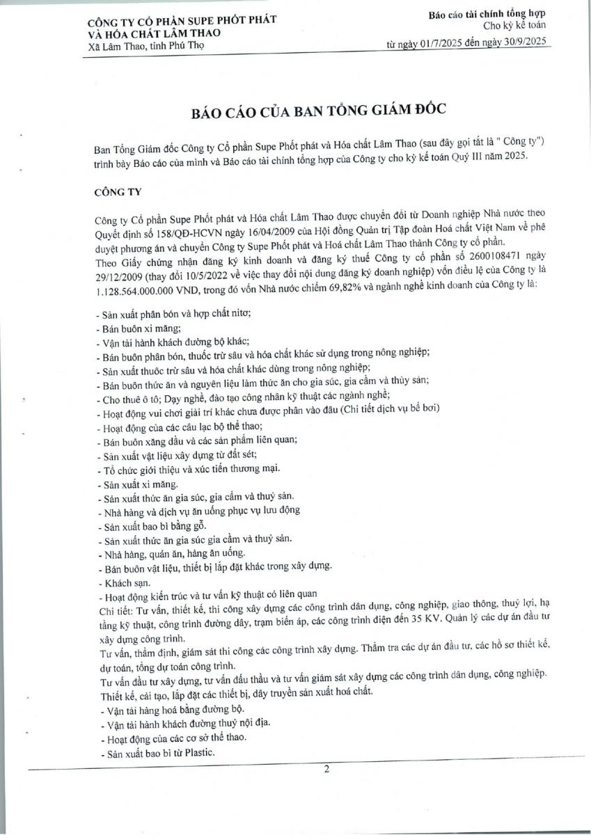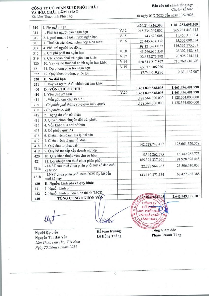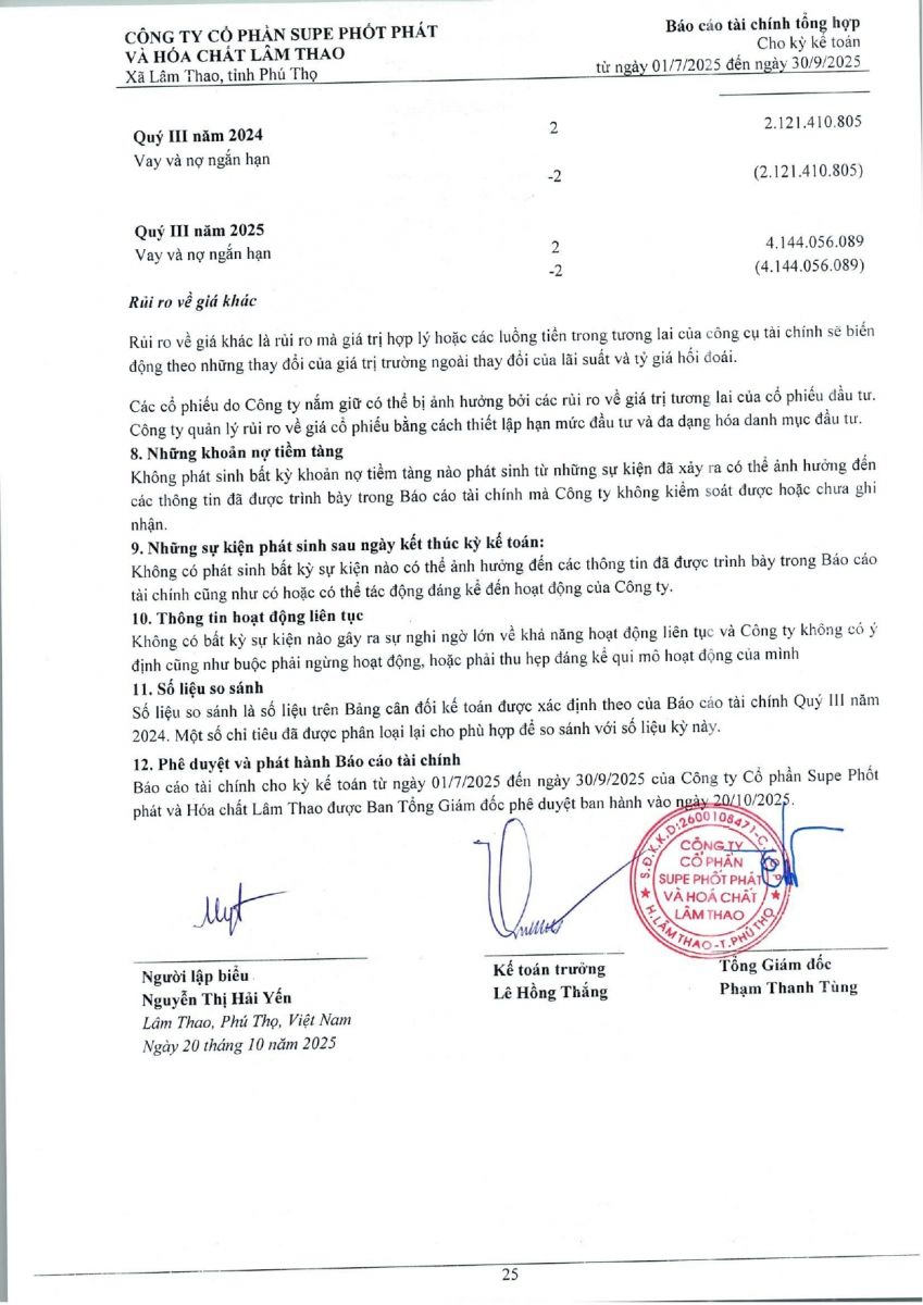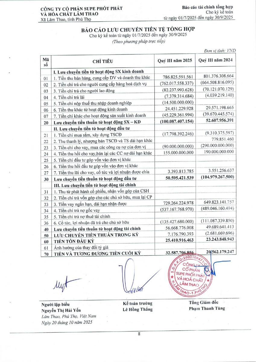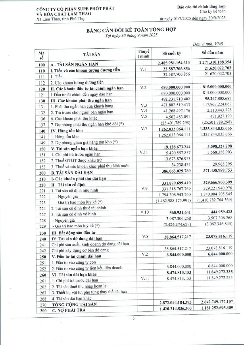 Báo cáo tài chính tổng hợp quý 3 năm 2025