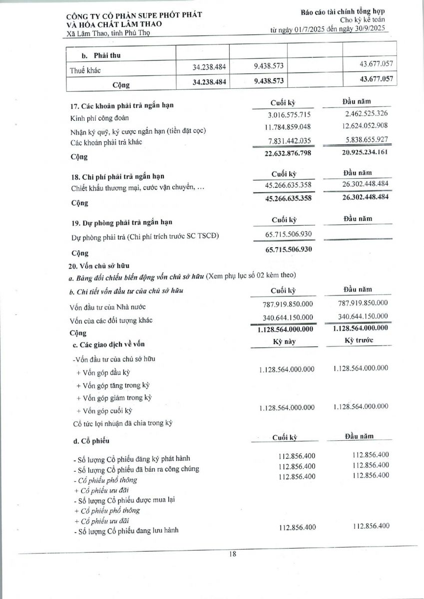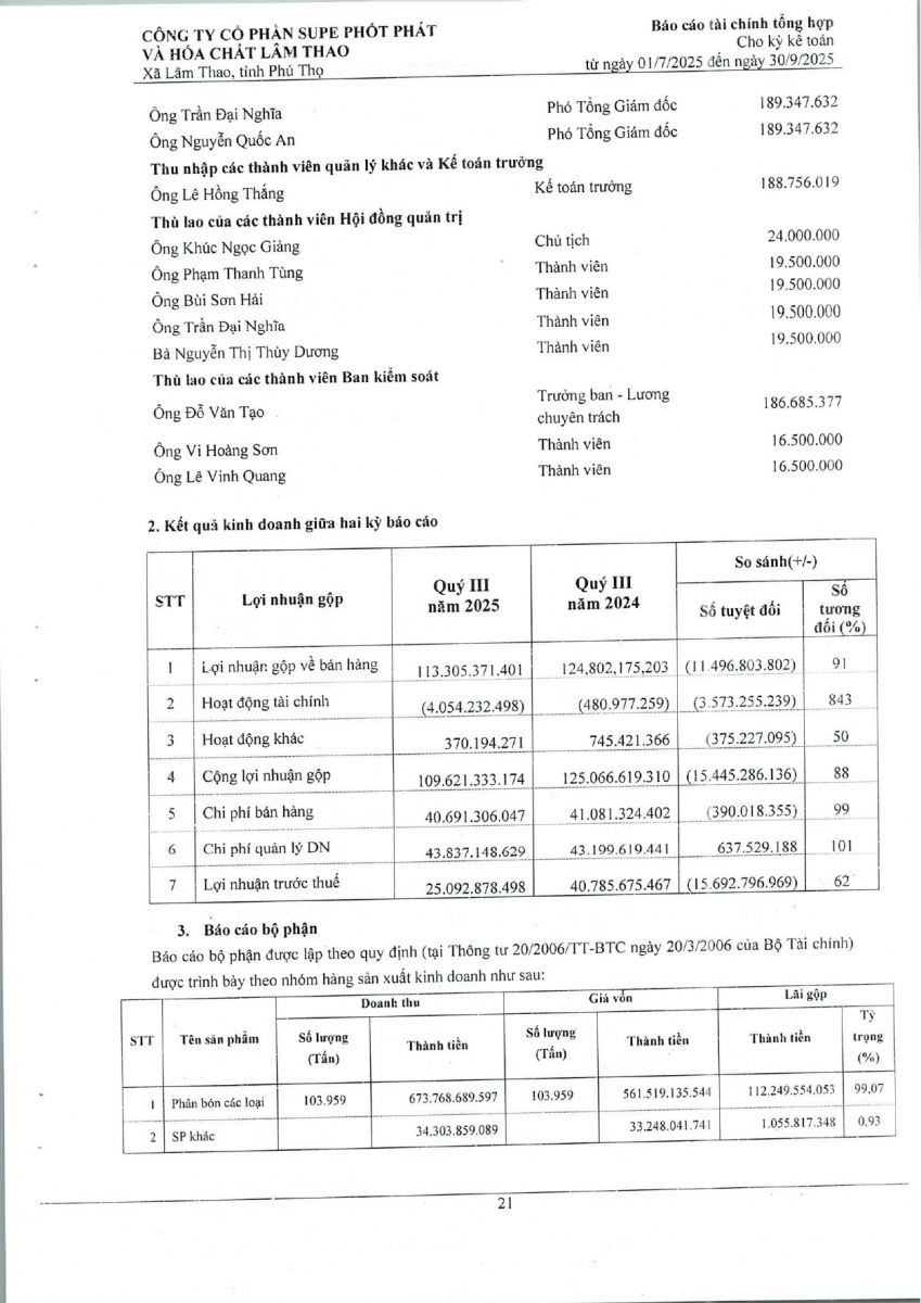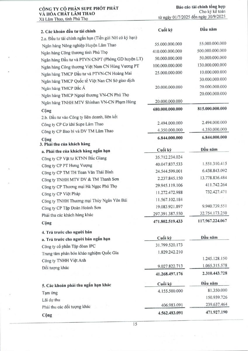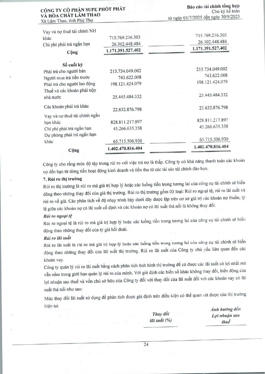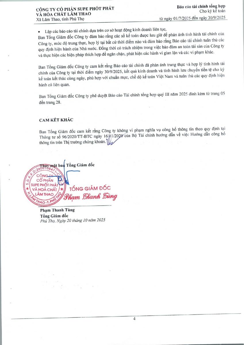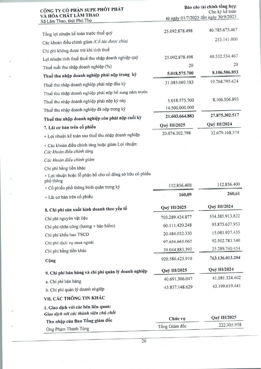 Báo cáo tài chính tổng hợp quý 3 năm 2025