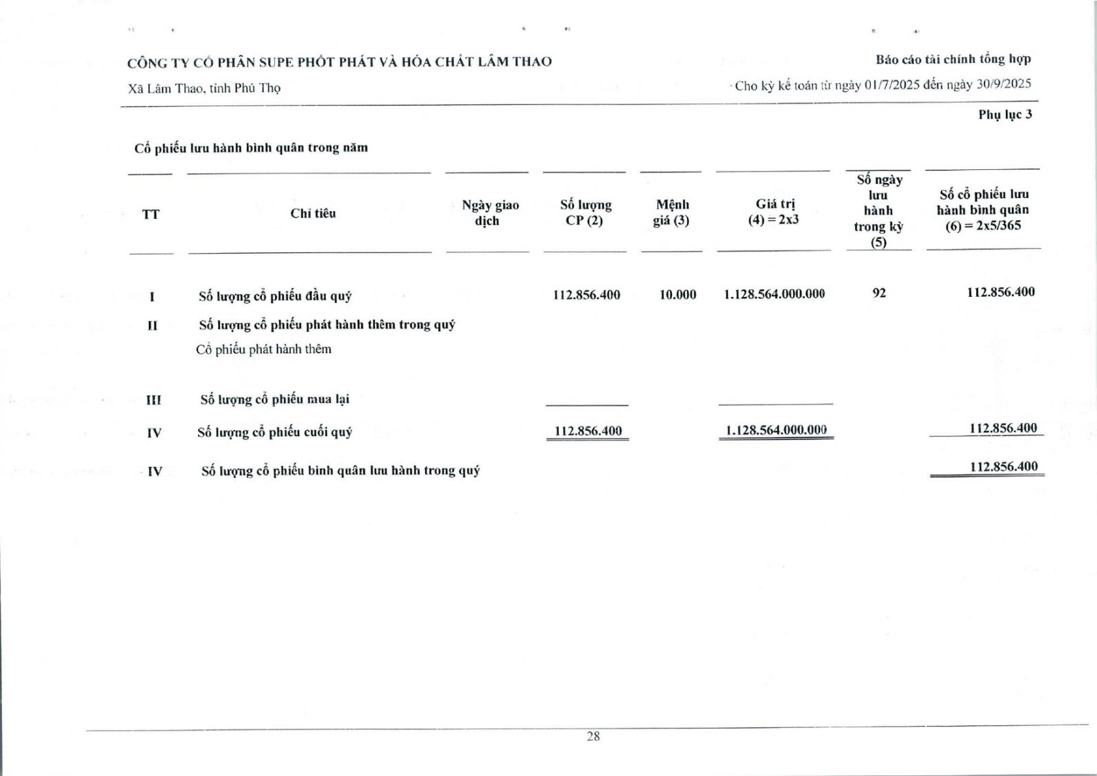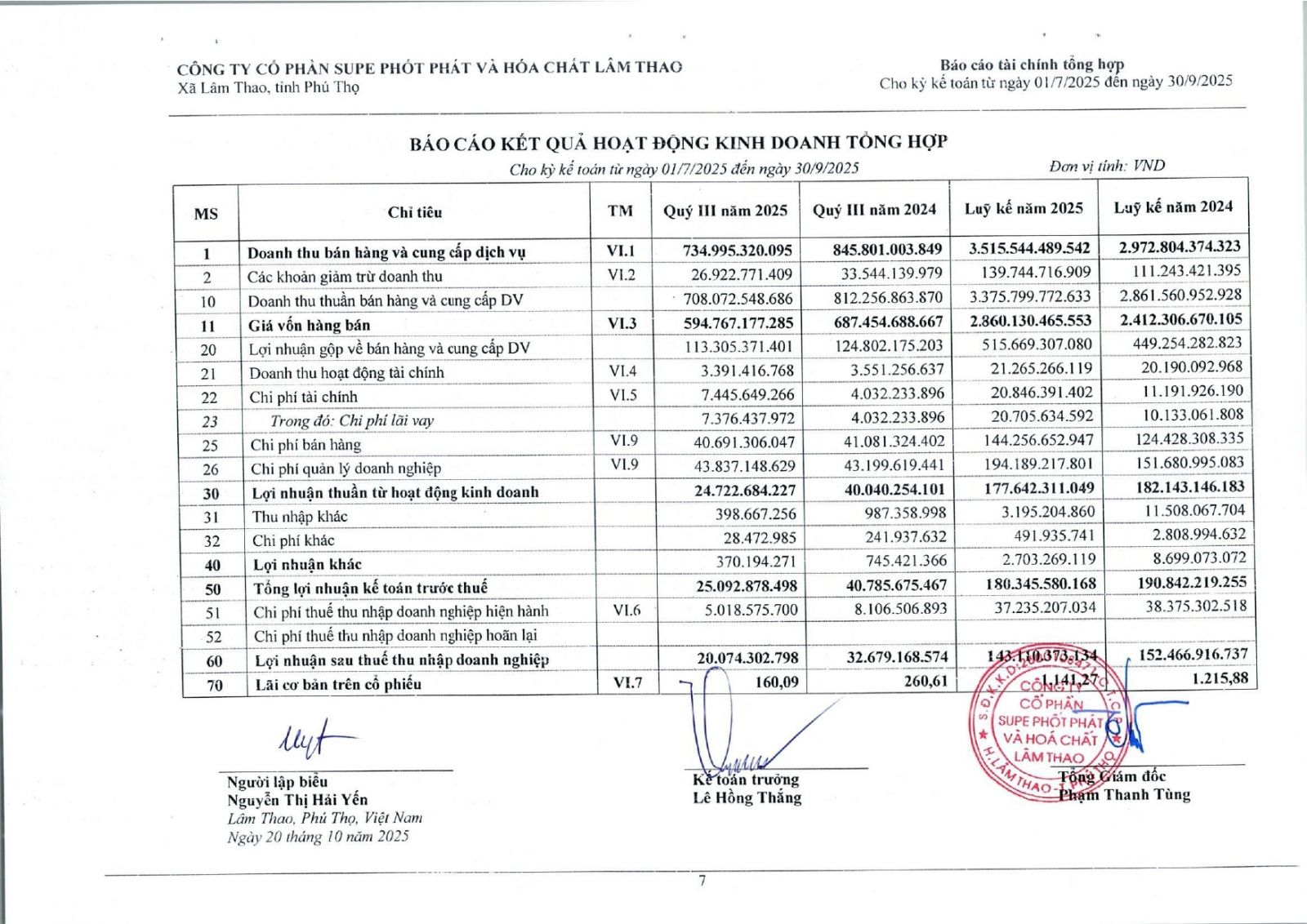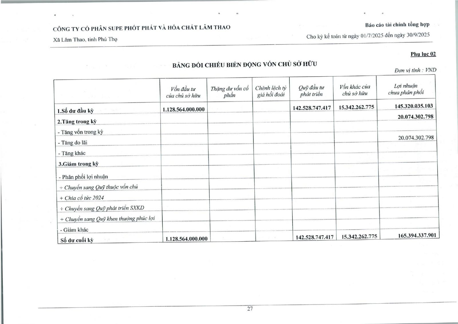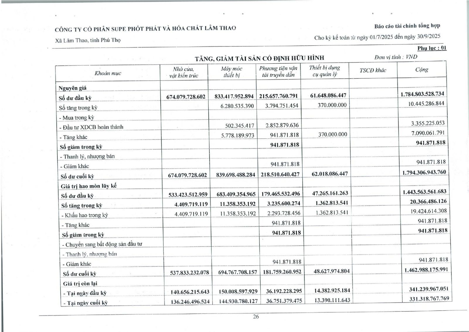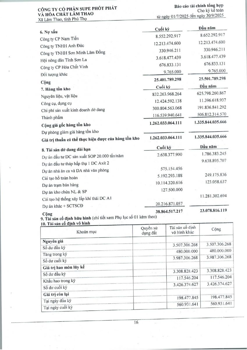Báo cáo tài chính tổng hợp quý 3 năm 2025