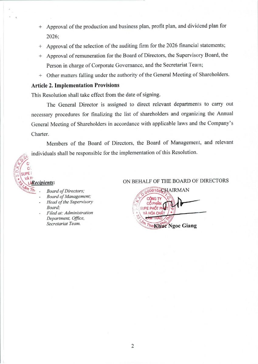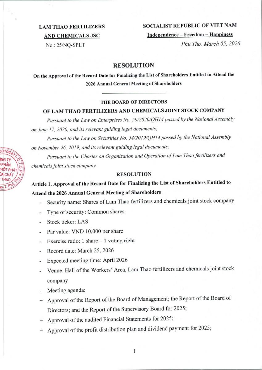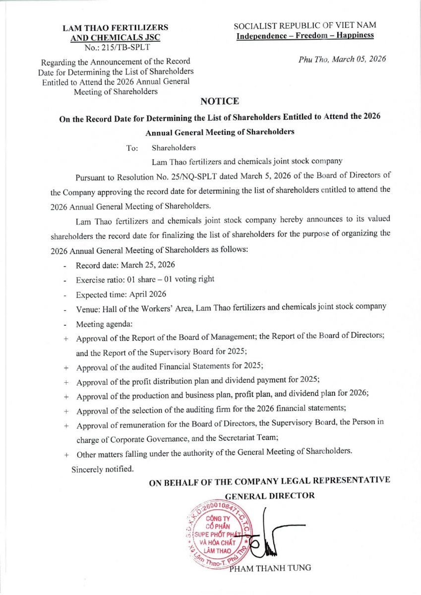 Notice the Record Date for Determining the List of Shareholders Entitled to Attend the 2026 Annual General Meeting of Shareholders