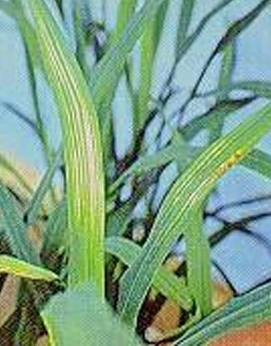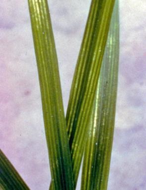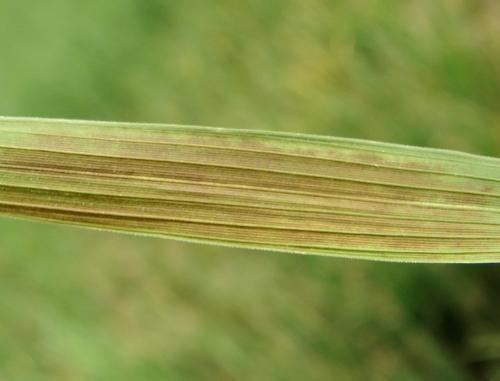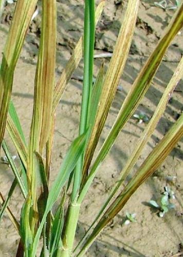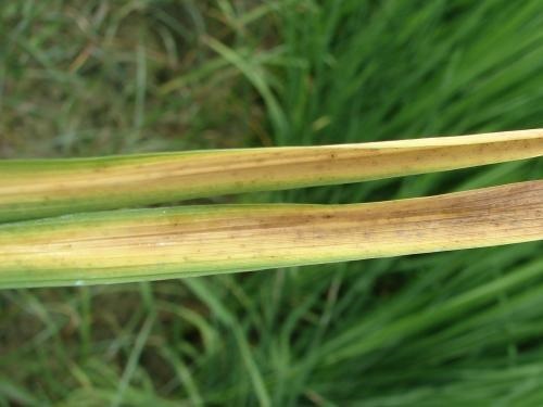 Triệu chứng Bệnh sọc xanh lá và đầu lá héo với vết bệnh hoại tử màu nâu. Sau đó, lá có thể bị héo hoàn toàn. Lá hình mác hẹp. Các triệu chứng được bản địa hóa trên các lá non trước tiên. Lý do Thiếu đồng. Cung cấp đồng thiếu có thể do hàm lượng đất thấp, giảm khả năng sử dụng Cu (hấp thụ trong đất than bùn) hoặc hấp thụ thấp (bón quá nhiều, mất cân bằng dinh dưỡng). Chỉ có một phạm vi hẹp giữa thiếu Cu và độc tính.
