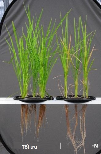 Các triệu chứng Bắt đầu từ ngọn, các lá già có biểu hiện vàng dần và sau đó là hoại tử màu nâu nhạt. Cây phát triển thưa thớt so với biến thể khỏe mạnh. Nguyên nhân Thiếu nitơ. Nhu cầu nitơ của lúa cao. Nhu cầu N lớn nhất là giữa giai đoạn đẻ nhánh và làm đòng. Ngược lại với phân P và K, tác dụng tồn dư của phân N cho vụ sau là rất nhỏ.