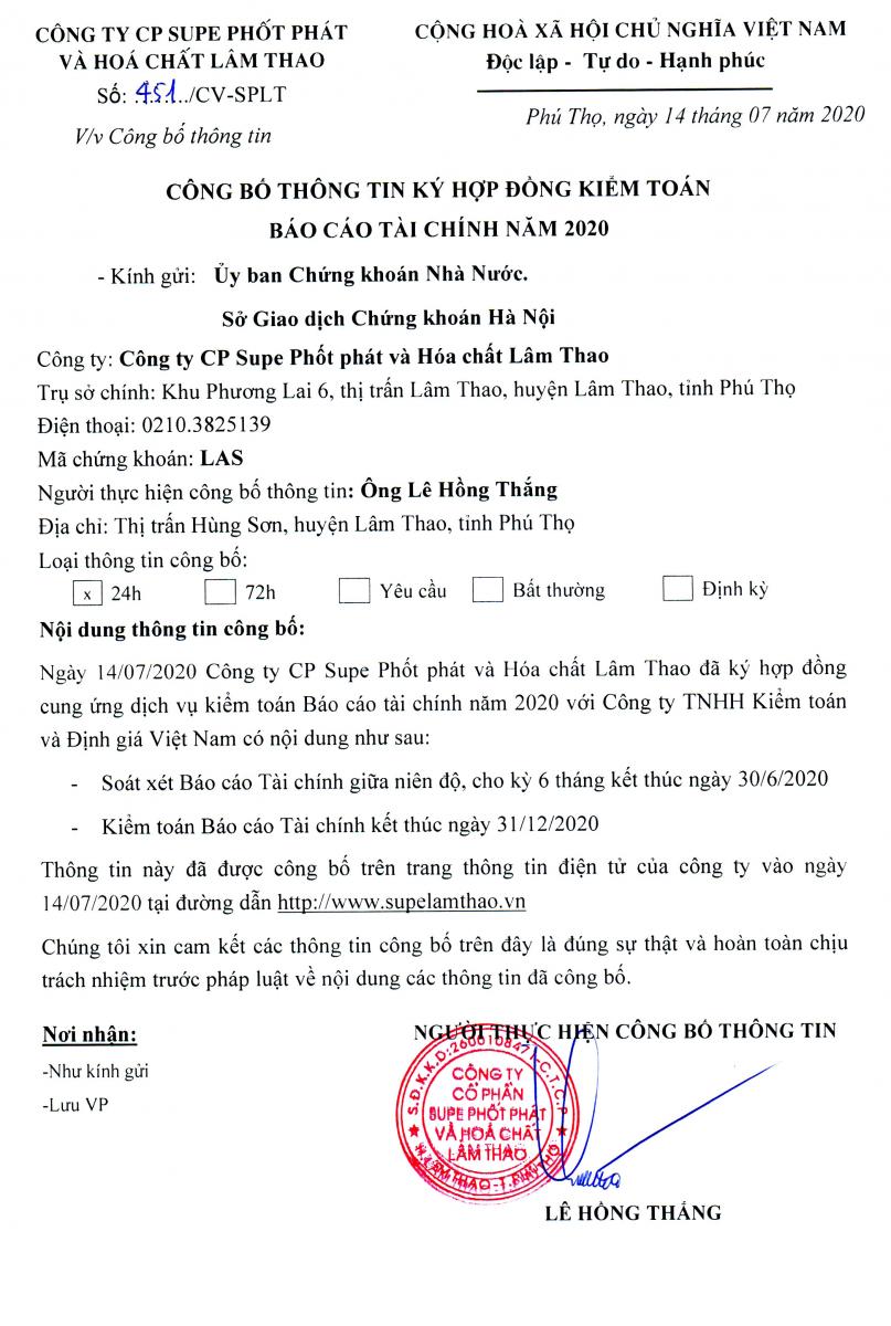 Công bố hợp đồng kiểm toán báo cáo tài chính năm 2020