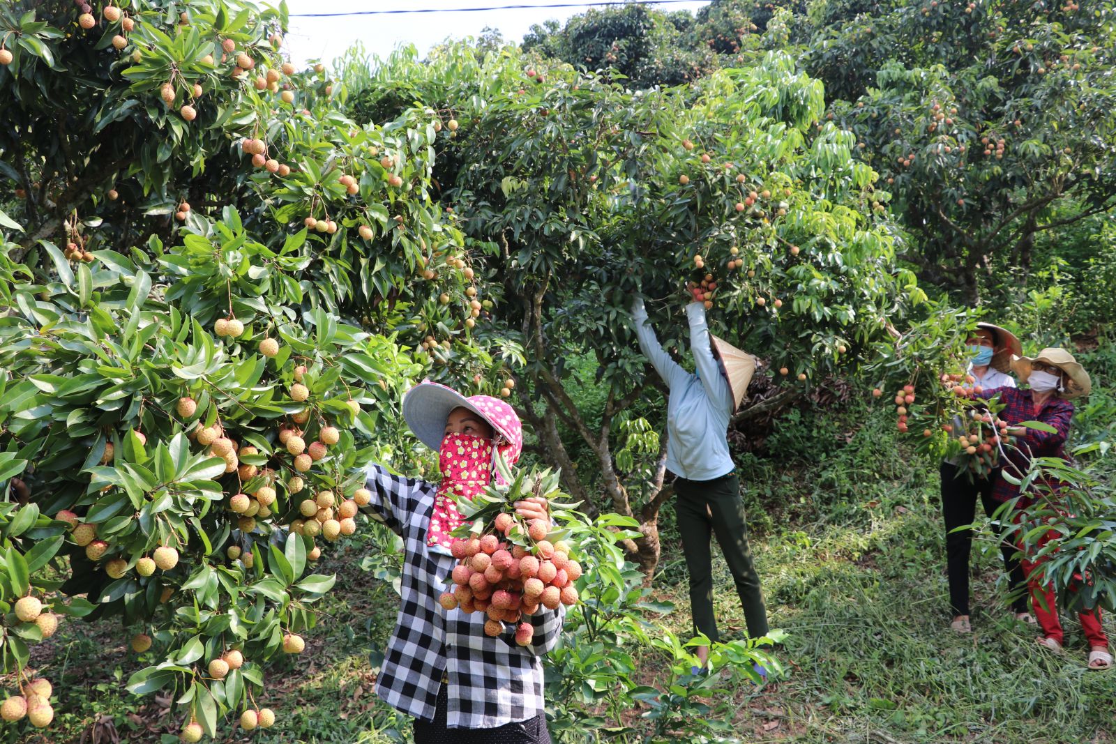 Bà con nông dân xã Hồng Giang, huyện Lục Ngạn thu hoạch vải thiều