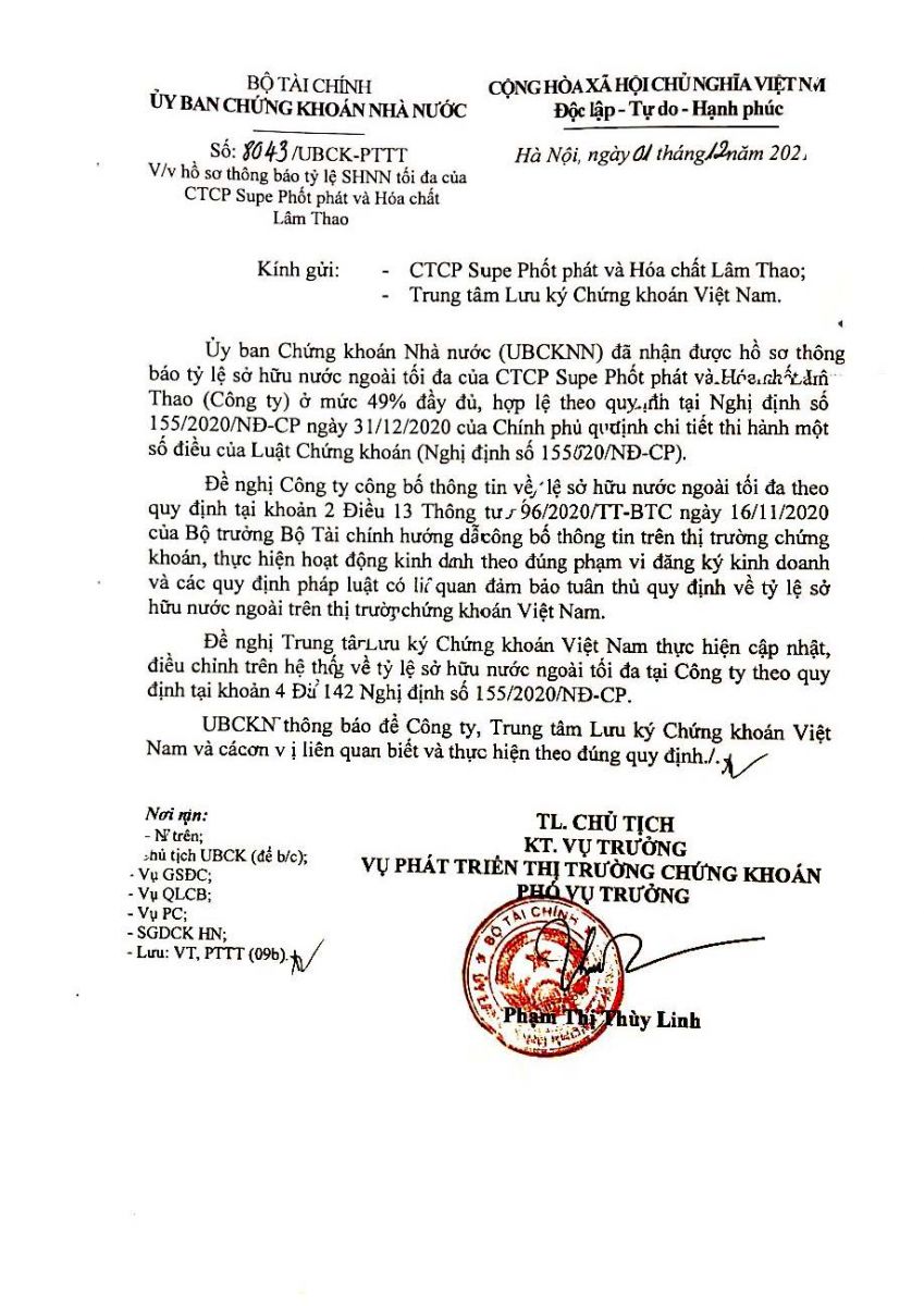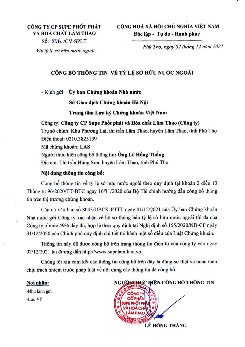 Trang chủ > LAS: Công bố thông tin về tỷ lệ sở hữu nước ngoài