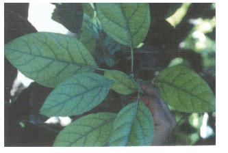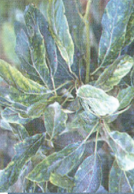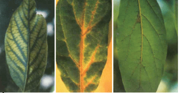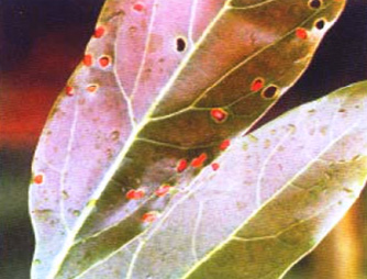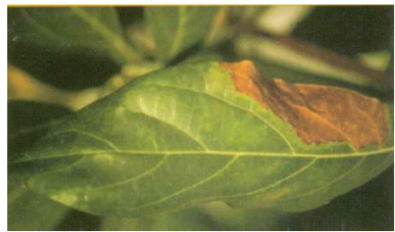 Các đốm hoại tử không đều, ở kẽ lá trên các lá già.