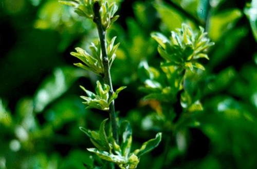 Chồi cuối bị chết, các lá non đâu tiên hơi bị úa sau đó mép bị cháy xém và cuộn vào trong