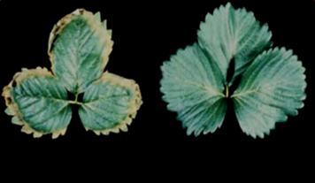 Triệu chứng thiếu dinh dưỡng kali (K) trên cây dâu tây