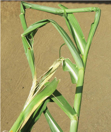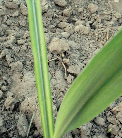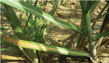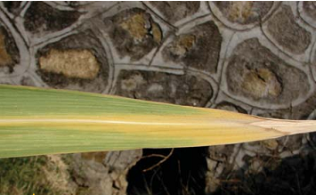 - Lá của toàn bộ cây thường có màu xanh nhạt, triệu chứng thiếu đạm thể hiện rõ nhất trên lá già sau đó mới đến lá non, toàn bộ lá già hoặc lá gần gốc thường chuyển sang màu vàng. Cây mía thiếu đạm có thể gây ra hiện tượng chết ngược trên lá già đã biểu hiện triệu chứng