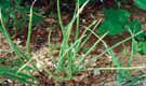 Lá có đốt đầu, màu sáng và quăn lại. Tăng trưởng bị hạn chế. Bulbing trễ vai với cổ dày