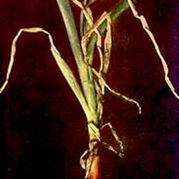 Triệu chứng : Các đầu lá non bị trắng, cuộn và quăn lại.
