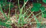 Lá có đốt đầu, màu sáng và quăn lại. Tăng trưởng bị hạn chế.
