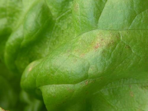 Các triệu chứng Nói chung thiếu sắt không làm giảm sự phát triển của rau diếp. Chỉ những lá bên trong bị ảnh hưởng, vì các triệu chứng thiếu sắt luôn bắt đầu trên những lá non nhất. Chúng biểu hiện màu xanh lục vàng, sau này có màu vàng chanh và vàng nhạt giữa các gân lá. Gân chính vẫn còn xanh. Với sự thiếu hụt mạnh, các gân lá cũng bị úa và các vùng hoại tử xuất hiện gần mép lá. Chỉ sự thiếu hụt nghiêm trọng mới tạo ra các triệu chứng trên các lá già. Có khả năng hoại tử màu nâu xuất hiện ở mép của lá úa và lan ra toàn bộ lá. Lý do Thiếu sắt