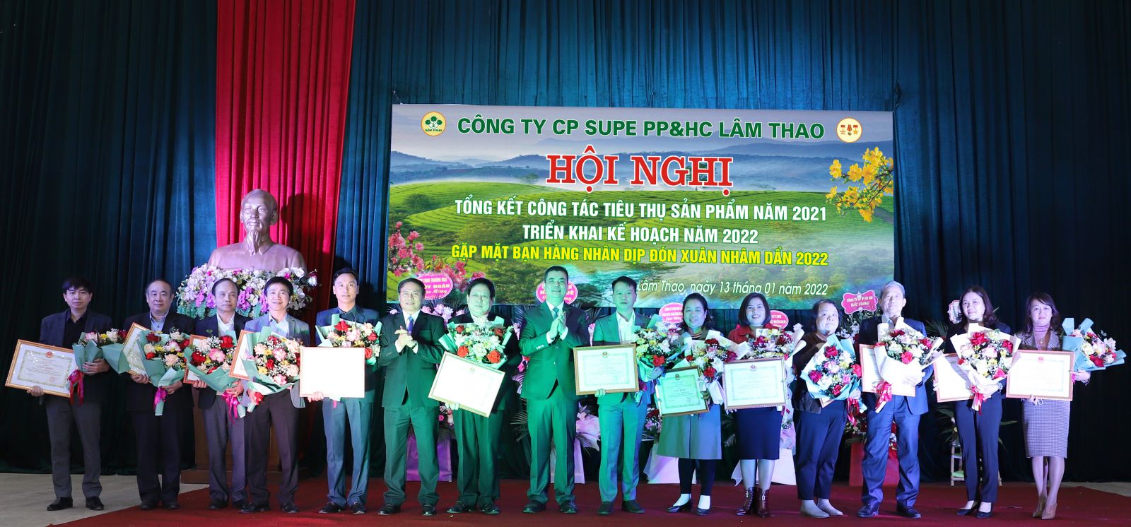 Nhân dịp chuẩn bị đón Xuân Nhâm Dần 2022, nhằm tri ân hệ thống phân phối và các đơn vị vận tải sản phẩm của Công ty, chiều 13/1/2022, Công ty CP Supe PP&HC Lâm Thao tổ chức trọng thể Hội nghị tổng kết công tác tiêu thụ sản phẩm năm 2021, triển khai nhiệm vụ năm 2022, gặp mặt bạn hàng tại Nhà Đa năng Công ty.