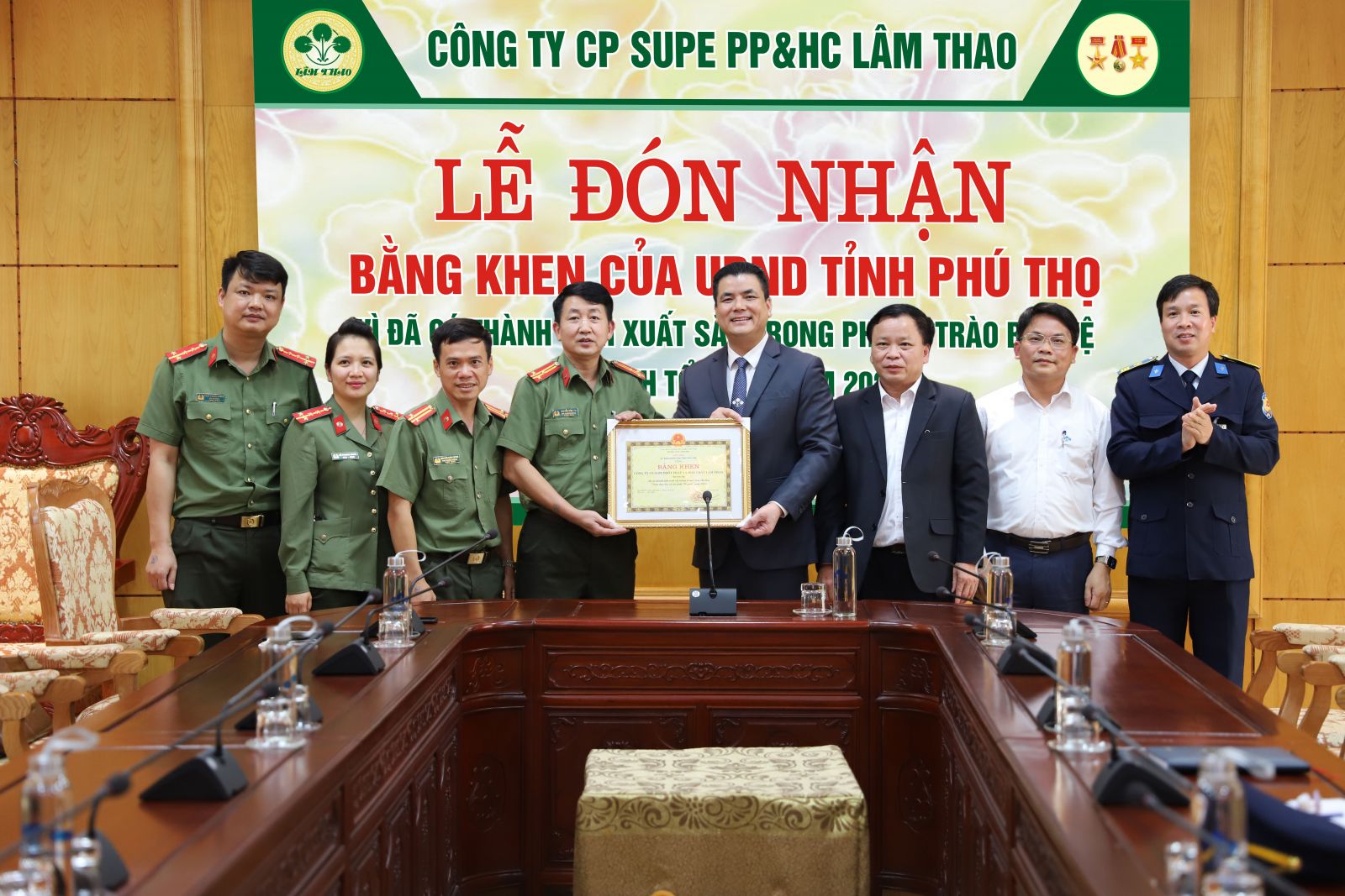 Chiều 19/4/2022, tại Công ty CP Supe PP&HC Lâm Thao diễn ra Lễ đón nhận Bằng khen của UBND tỉnh Phú Thọ vì đã có thành tích xuất sắc trong phong trào “Toàn dân bảo vệ an ninh Tổ quốc” năm 2021.