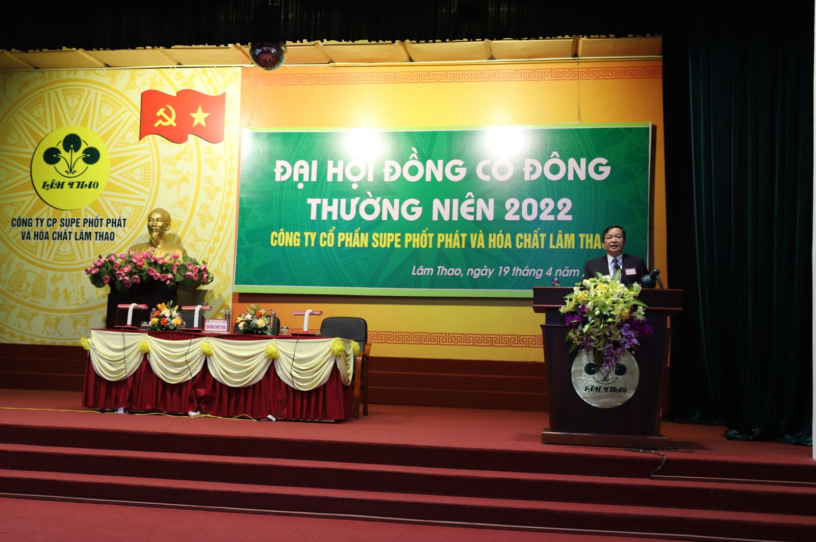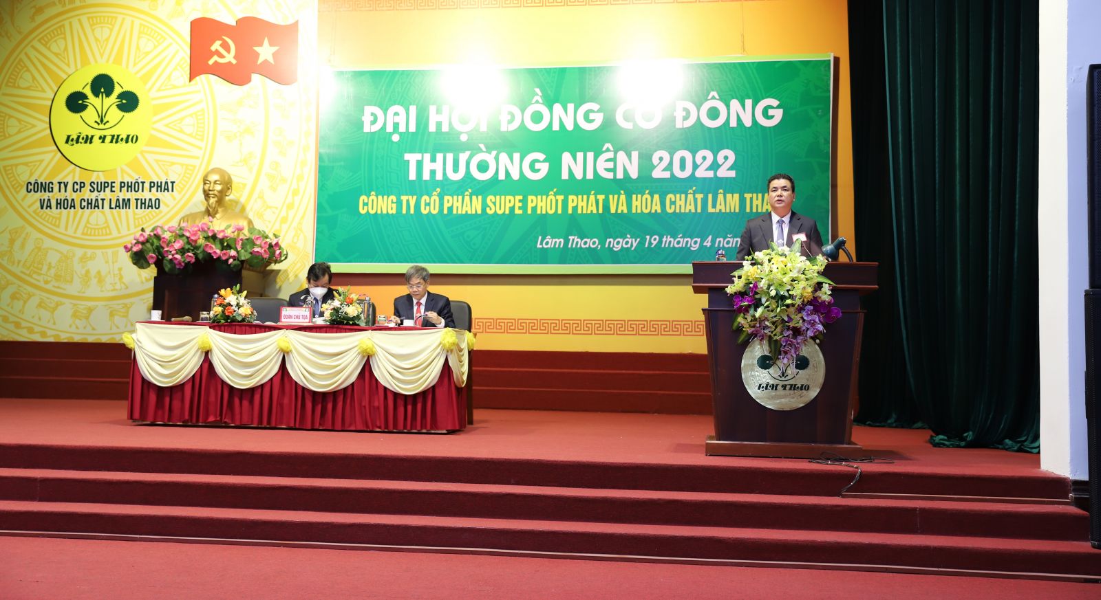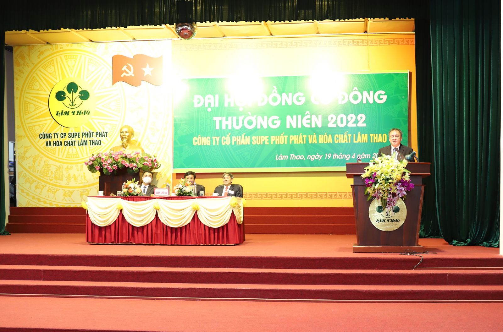 Ngày 19/4/2022, tại Hội trường KCN, Công ty CP Supe PP&HC Lâm Thao đã tổ chức trọng thể Đại hội đồng cổ đông thường niên 2022. Ông Phạm Quang Tuyến, Chủ tịch Hội đồng Quản trị Công ty, Chủ tọa Đại hội; tham dự Đoàn Chủ tọa có ông Phạm Thanh Tùng, Ủy viên HĐQT, Bí thư Đảng ủy, Tổng Giám đốc; ông Nguyễn Thành Công, Ủy viên HĐQT, Phó Tổng Giám đốc Công ty.
