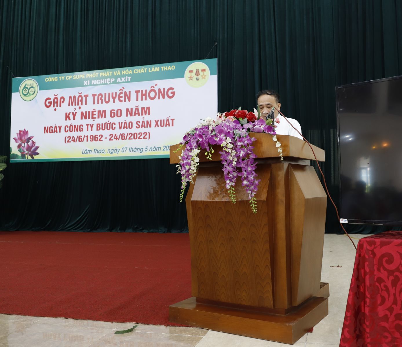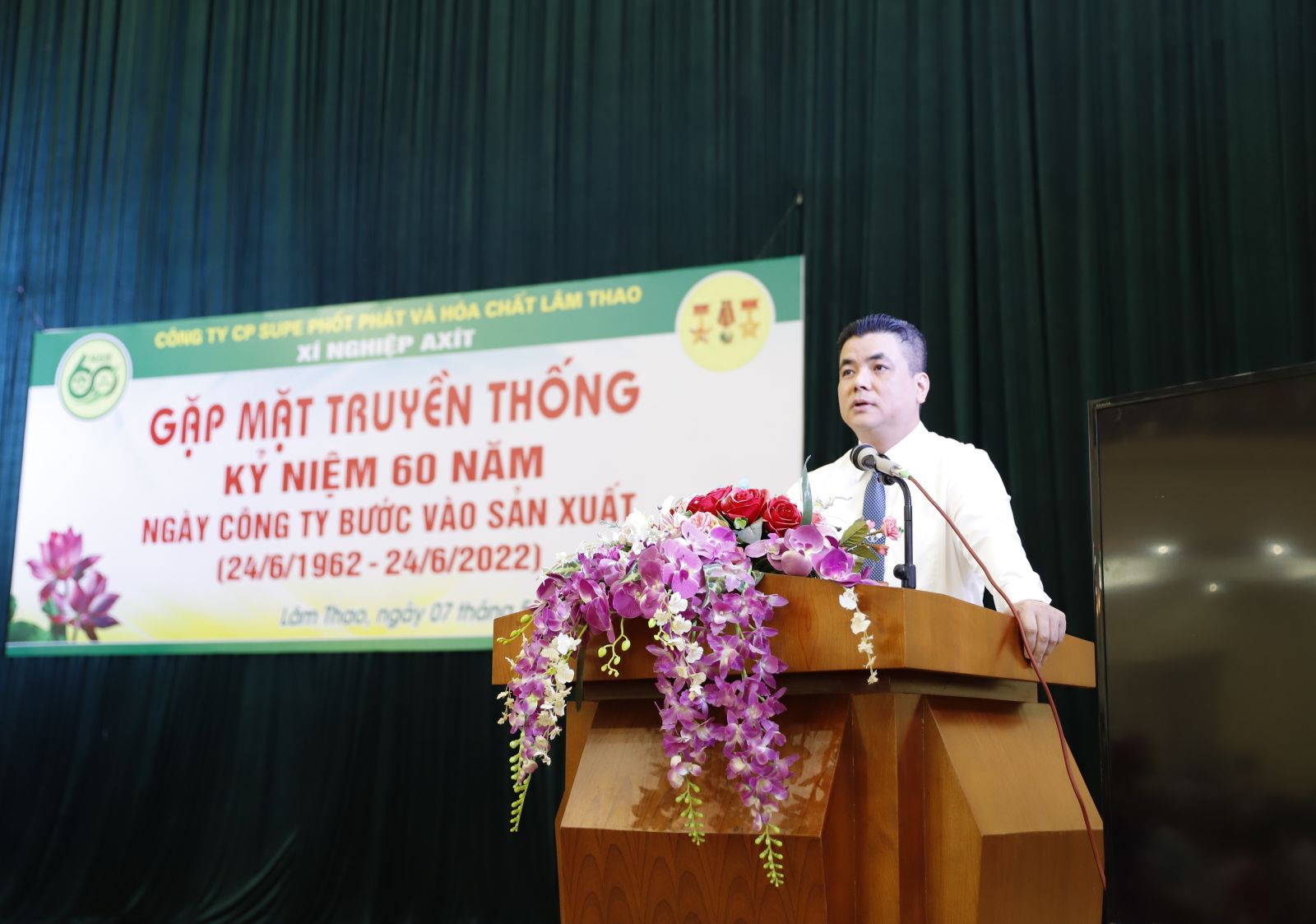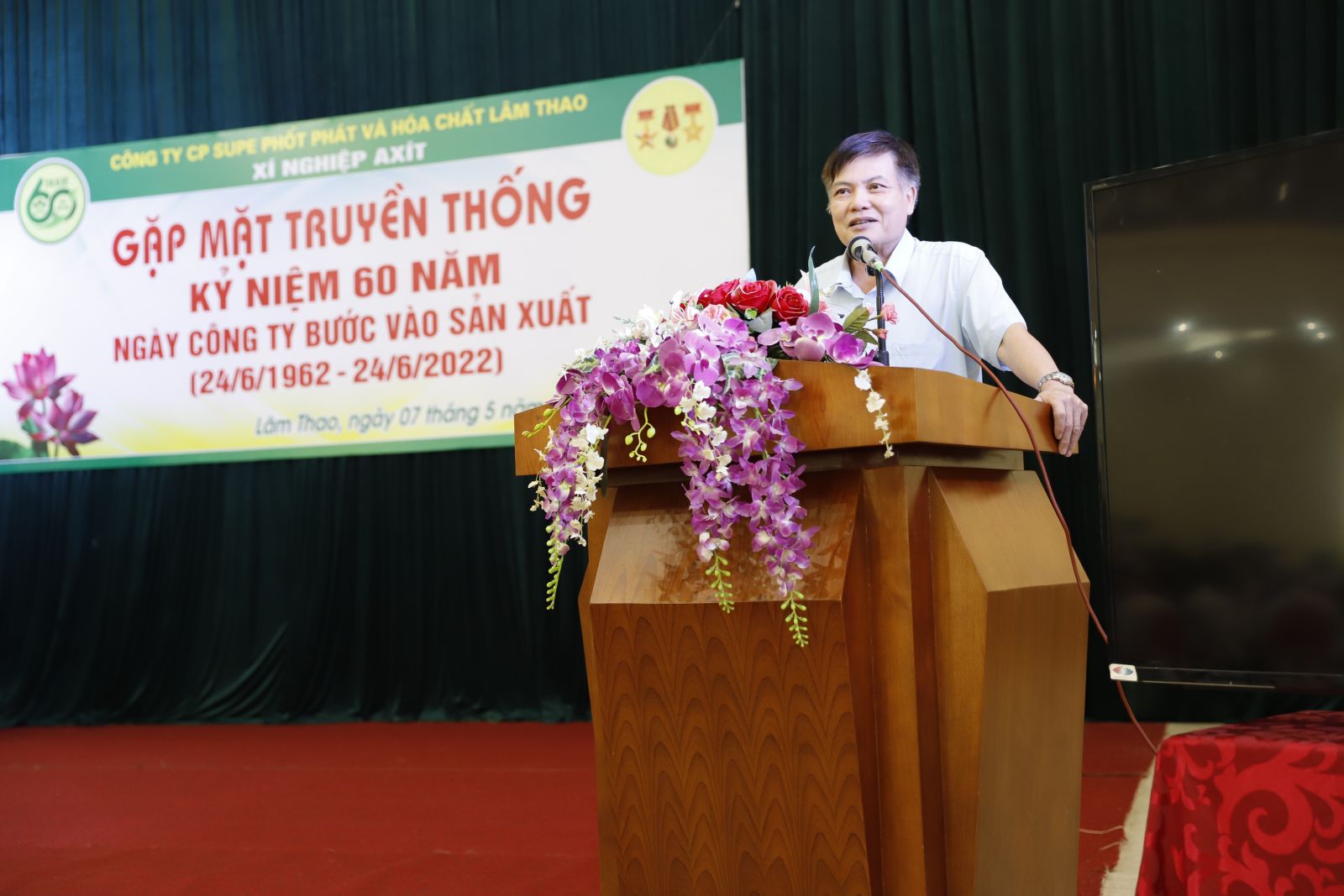 Hướng tới Kỷ niệm 60 năm Ngày Công ty bước vào sản xuất (24/6/1962-24/6/2022) và Ngày Bác Hồ kính yêu về thăm Công ty (19/8/1962-19/8/2022), trong nhiều hoạt động chào mừng kỷ niệm, Công ty tổ chức các buổi gặp mặt các thế hệ cán bộ, công nhân đã từng công tác tại Công ty của các đơn vị. Xí nghiệp Axít là đơn vị đầu tiên trong Công ty vinh dự được tổ chức buổi gặp mặt trọng thể các thế hệ cán bộ, công nhân trong ngày 7/5/2022 tại Nhà Đa năng Công ty.