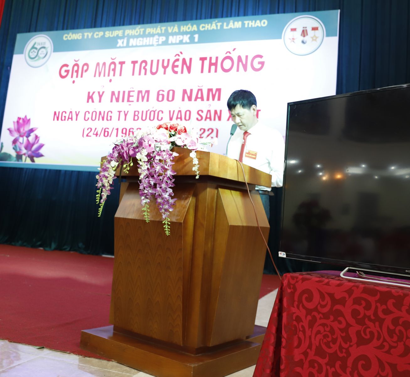 Cùng các đơn vị trong toàn Công ty hướng tới chào mừng Kỷ niệm 60 năm Ngày Công ty bước vào sản xuất (24/6/1962-24/6/2022) và Ngày Bác Hồ về thăm Công ty (19/8/1962-19/8/2022), sáng ngày 15/5/2022, tại Nhà Đa năng và nhà Hành chính 3 Công ty, Xí nghiệp NPK 1 cùng Phòng Tổ chức Lao động long trọng tổ chức buổi gặp mặt các thế hệ cán bộ, công nhân viên.