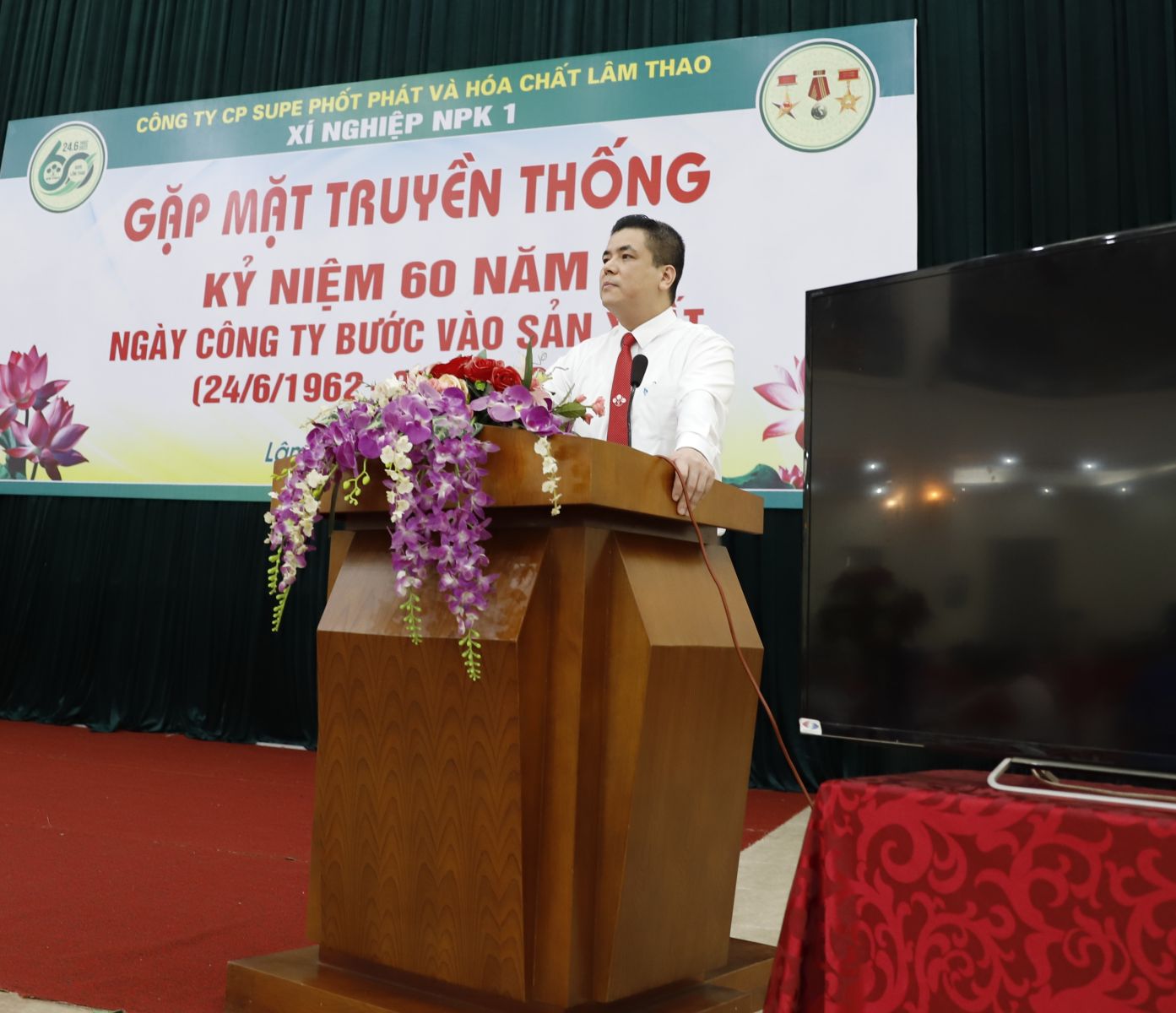 Thay mặt Ban Lãnh đạo Công ty phát biểu trong buổi gặp mặt của hai đơn vị, đồng chí Phạm Thanh Tùng, Bí thư Đảng ủy, Tổng Giám đốc cảm ơn những đóng góp to lớn của các thế hệ cán bộ, công nhân viên Công ty, trong đó có các thế hệ cán bộ, công nhân viên Xí nghiệp NPK 1 và Phòng Tổ chức Lao động; đồng thời Tổng Giám đốc Công ty gửi lời chúc tới các đồng chí cùng gia đình luôn mạnh khỏe, an khang thịnh vượng và mong muốn dù các đồng chí đã nghỉ hưu nhưng sẽ luôn dõi theo, tiếp tục có những đóng góp tích cực, thiết thực đối với đơn vị cũng như Công ty.