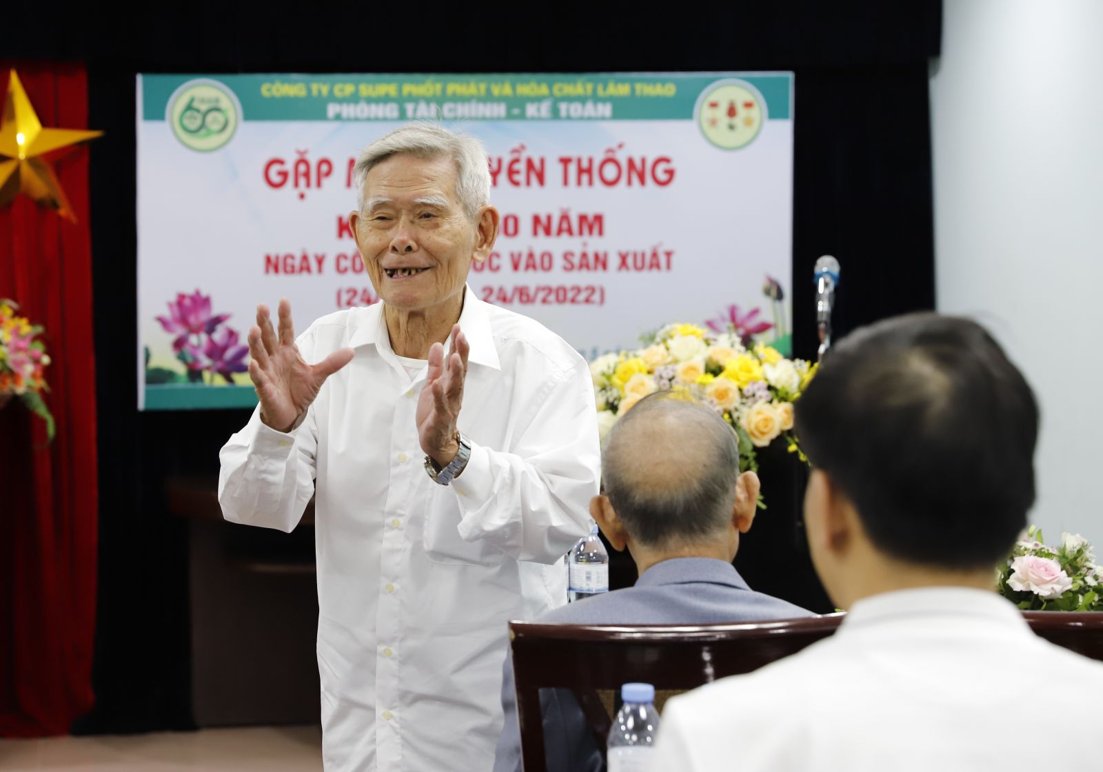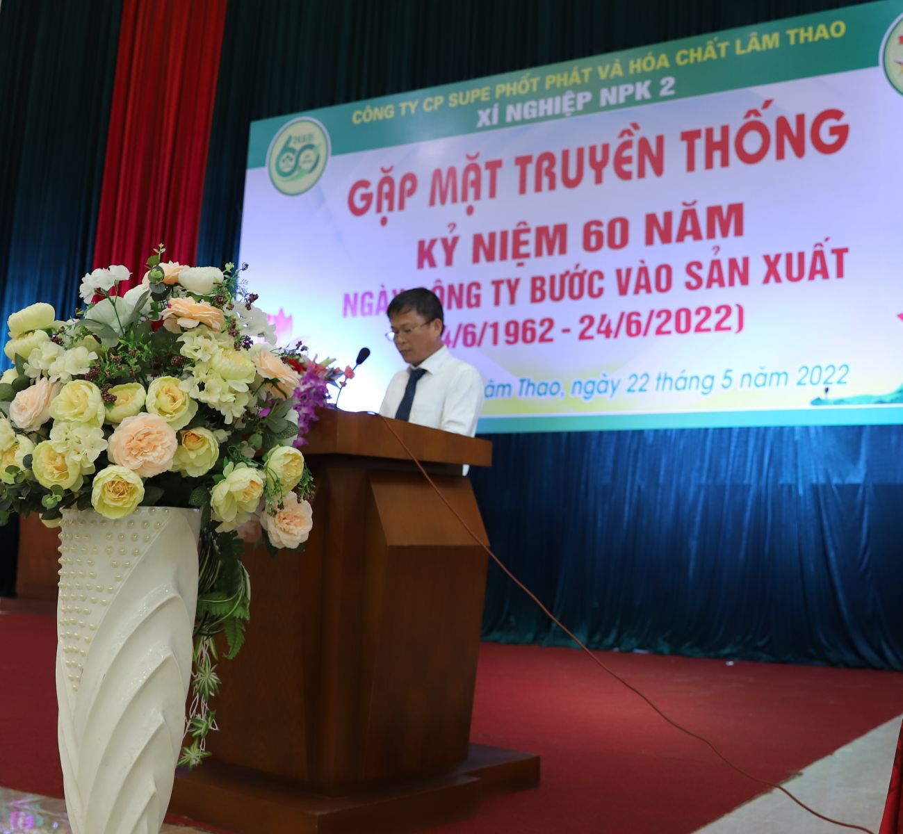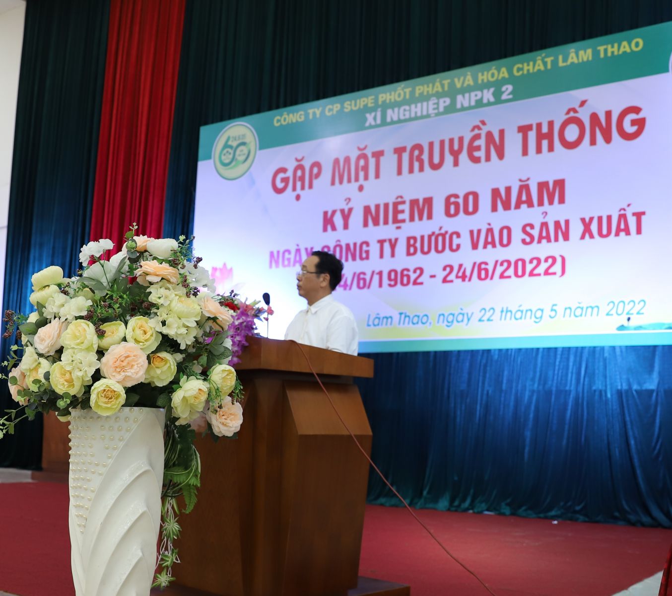 Trong không khí hân hoan, phấn khởi của toàn Công ty hướng tới chào mừng Kỷ niệm 60 năm Ngày Công ty bước vào sản xuất (24/6/1962-24/6/2022) và Ngày Bác Hồ về thăm Công ty (19/8/1962-19/8/2022), sáng ngày 22/5/2022, tại Nhà Đa năng và nhà Hành chính 3 Công ty, Xí nghiệp NPK 2 cùng Phòng Tài chính kế toán đã long trọng tổ chức buổi gặp mặt các thế hệ cán bộ, công nhân viên.
