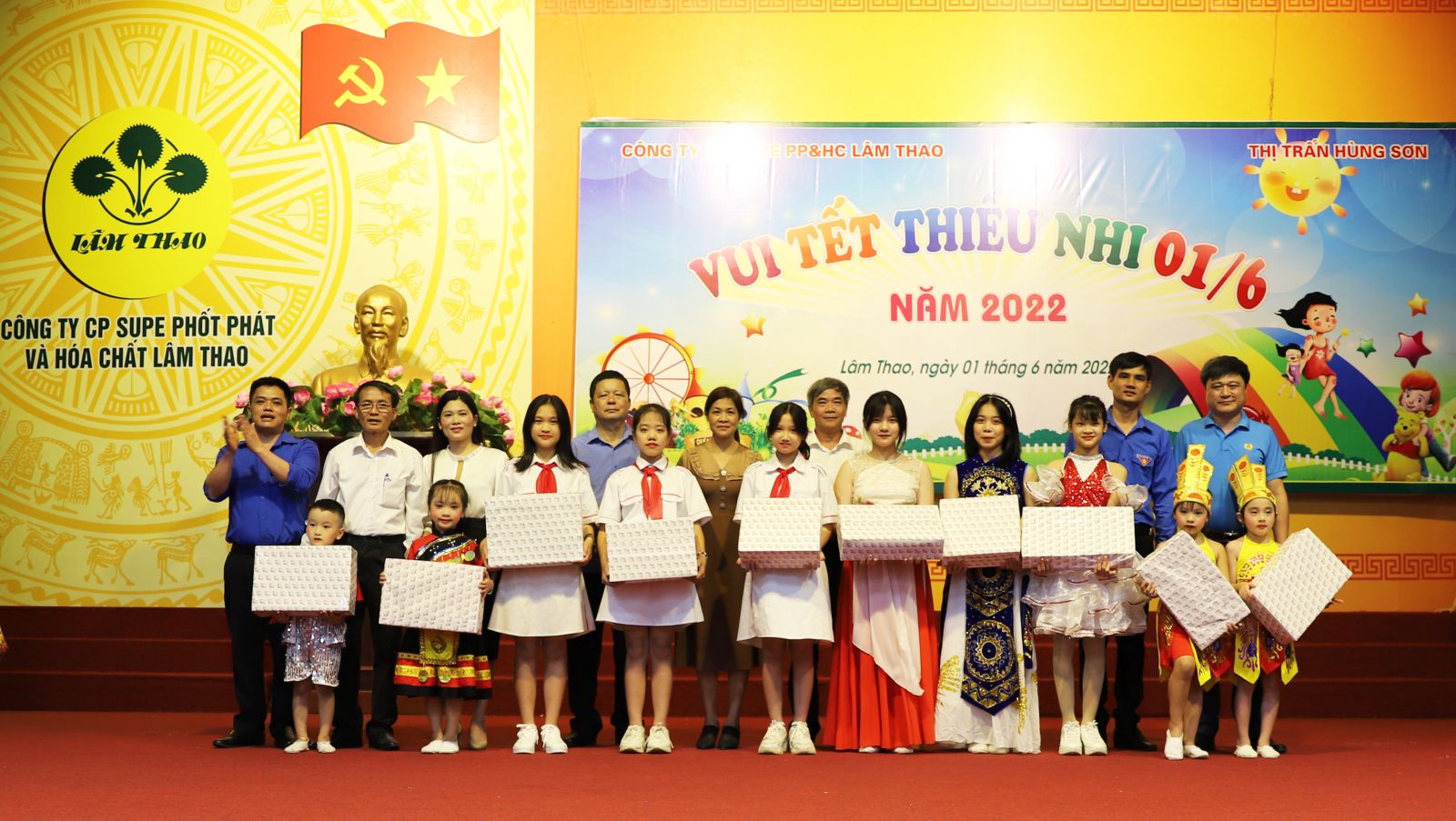 Hoà chung không khí nhộn nhịp khắp nơi trong cả nước đón chào ngày Quốc tế thiếu nhi 01/6, được sự quan tâm, tạo điều kiện của Ban Lãnh đạo Công ty, tối ngày 01/6/2022, tại Hội trường Khu công nhân Supe, Đoàn Thanh niên Công ty phối hợp với Đoàn Thanh niên thị trấn Hùng Sơn tổ chức chương trình “Vui Tết thiếu nhi 01/6" cho các cháu thiếu niên nhi đồng là con em của cán bộ, công nhân viên Công ty và nhân dân trên địa bàn.