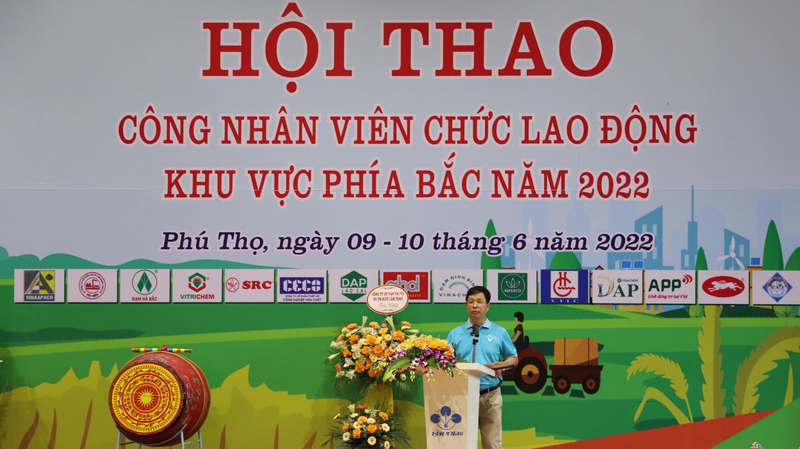 Đại diện đơn vị đăng cai tổ chức phát biểu chào mừng Hội thao, đồng chí Phạm Thanh Tùng, Bí thư Đảng ủy, Tổng Giám đốc Công ty CP Supe Phốt phát và Hóa chất Lâm Thao chia sẻ: Công ty rất vinh dự, tự hào khi được lựa chọn là đơn vị đăng cai tổ chức Hội thao. Sự kiện này càng có ý nghĩa hơn khi hiện nay tập thể Lãnh đạo, cán bộ và người lao động Công ty đang ra sức thi đua sôi nổi hướng tới chào mừng kỷ niệm 60 năm ngày Công ty bước vào sản xuất (24/6/1962-24/6/2022) và kỷ niệm 60 năm ngày Bác Hồ về thăm Công ty (19/8/1962-19/8/2022).