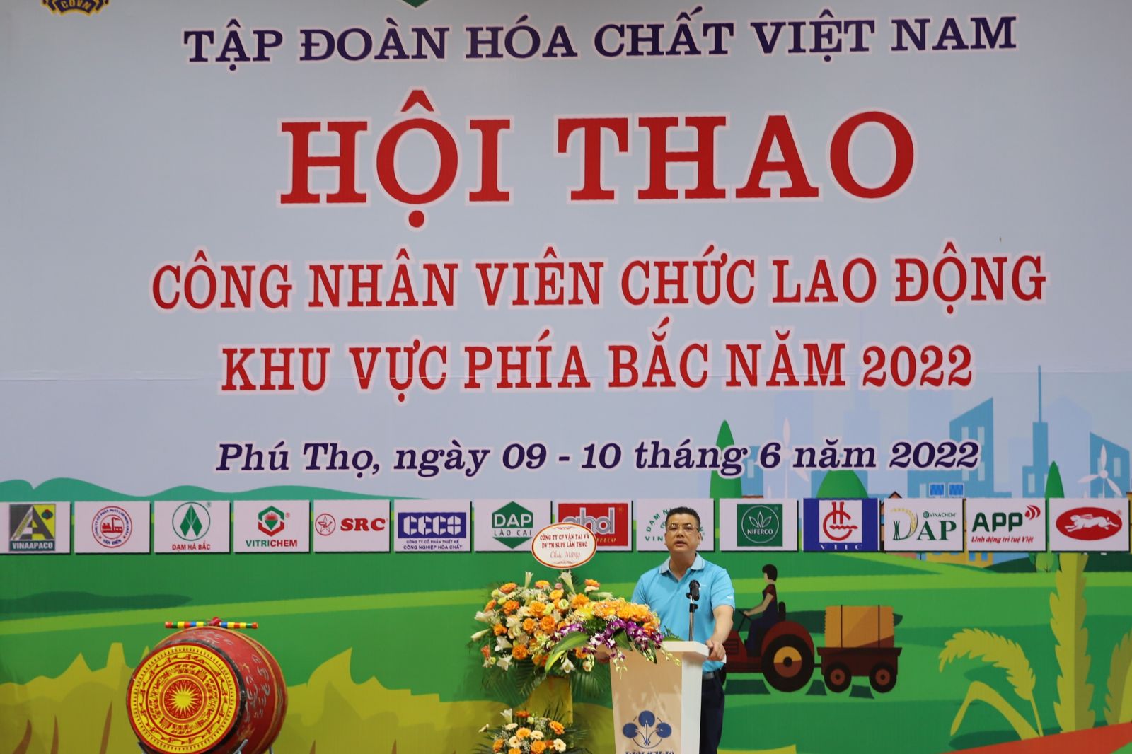 Phát biểu khai mạc Hội thao, đồng chí Nguyễn Huy Thông, Chủ tịch Công đoàn Công nghiệp Hóa chất Việt Nam cho biết: Hội thao diễn ra trong hai ngày 9 và 10/6/2022. Đây là hoạt động thiết thực hướng tới chào mừng kỷ niệm 93 năm ngày thành lập Công đoàn Việt Nam; 50 năm ngày thành lập Công đoàn Công nghiệp Hóa chất Việt Nam; đồng thời động viên CNVCLĐ Tập đoàn phát huy truyền thống, tăng cường luyện tập thể dục thể thao. Nhân dịp này, đồng chí mong muốn các trọng tài và vận động viên chấp hành nghiêm nội quy, điều lệ của ban Tổ chức và giữ vững kỷ luật trong thi đấu, giành nhiều thành tích cao để góp phần tạo nên thành công của Hội thao. Qua đó, đưa phong trào thể dục thể thao của từng đơn vị lên một bước mới, xứng đáng với tiềm năng thể dục thể thao của Tập đoàn, góp phần thực hiện thắng lợi mục tiêu sản xuất kinh doanh mà Tập đoàn đề ra trong năm 2022 và những năm tiếp theo.