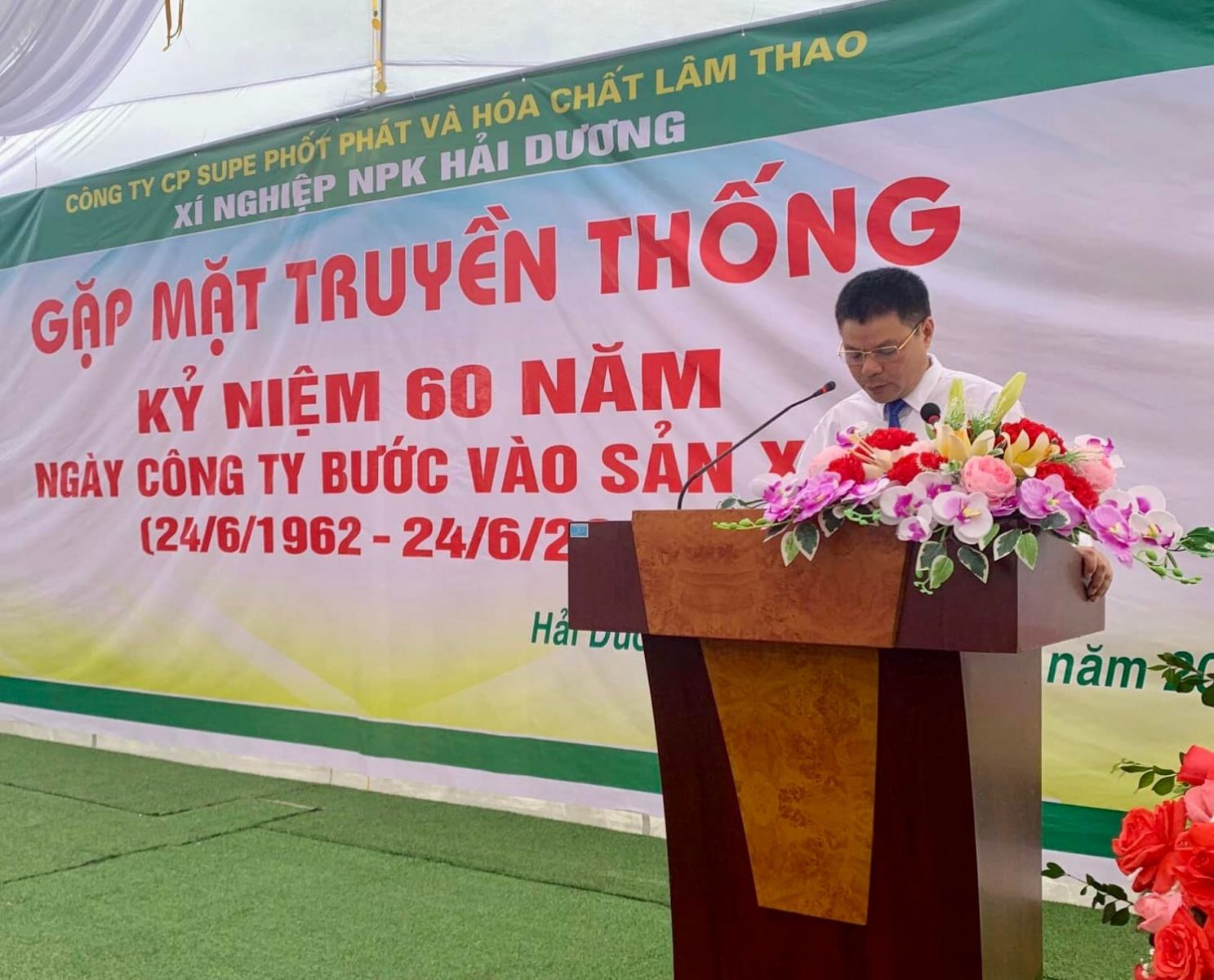 Thiết thực hướng tới chào mừng kỷ niệm 60 năm ngày Công ty bước vào sản xuất (24/6/1962-24/6/2022), kỷ niệm 60 năm ngày Bác Hồ về thăm Công ty (19/8/1962-19/8/2022), Phòng Kỹ thuật, Xí nghiệp NPK Hải Dương và Trường Mầm non Supe long trọng tổ chức gặp mặt các thế hệ cán bộ, công nhân viên, giáo viên của đơn vị trong sáng ngày 12/6/2022.
