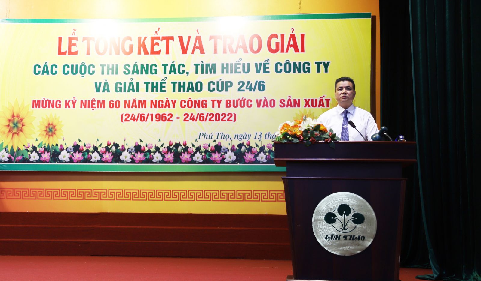 Thay mặt ban lãnh đạo Công ty phát biểu tại buổi tổng kết trao thưởng các cuộc thi sáng tác, tìm hiểu về Công ty và Giải thể thao cúp 24/6, đồng chí Phạm Thanh Tùng, Bí thư Đảng ủy, Tổng Giám đốc ghi nhận, biểu dương và cảm ơn thành viên Ban Tổ chức, Ban Giám khảo, Tổ giúp việc các cuộc thi và Tổ Trọng tài các bộ môn thi đấu đã có nhiều cố gắng trong công tác tổ chức, chấm giải, vận động các tập thể và cá nhân tham gia các cuộc thi. Đồng chí đặc biệt chúc mừng và biểu dương những thành tích tiêu biểu của các tác giả và các vận động viên đã dành nhiều thời gian, tâm huyết, trí tuệ, sức lực để tham gia các cuộc thi, góp phần quan trọng vào sự thành công của các cuộc thi và Giải thể thao Cúp 24/6/2022, đồng thời góp phần tô thắm thêm truyền thống tốt đẹp của Supe Lâm Thao, một doanh nghiệp không những tiên phong trong lĩnh vực sản xuất phân bón, hóa chất mà còn là điểm sáng trong phong trào văn hóa, thể thao.