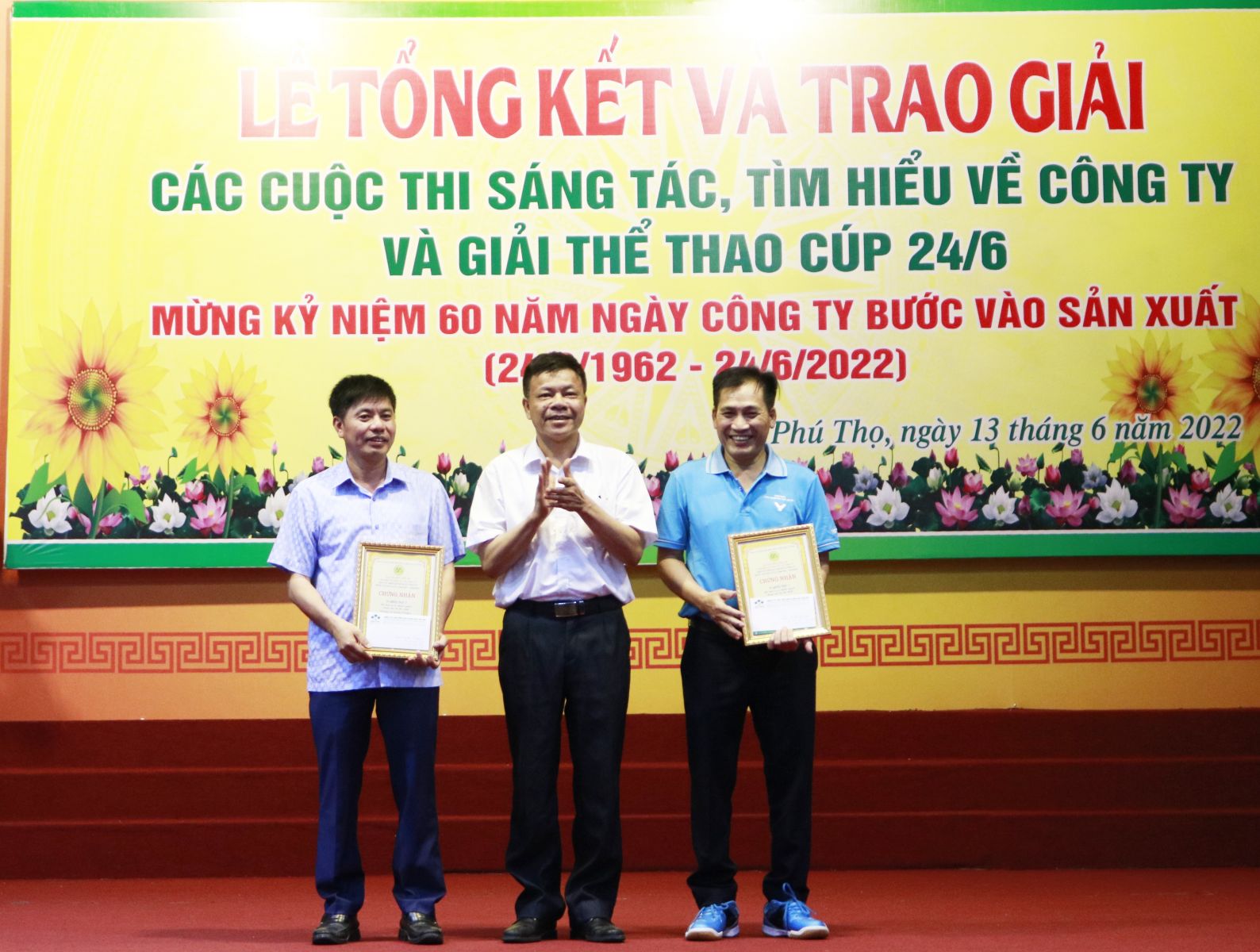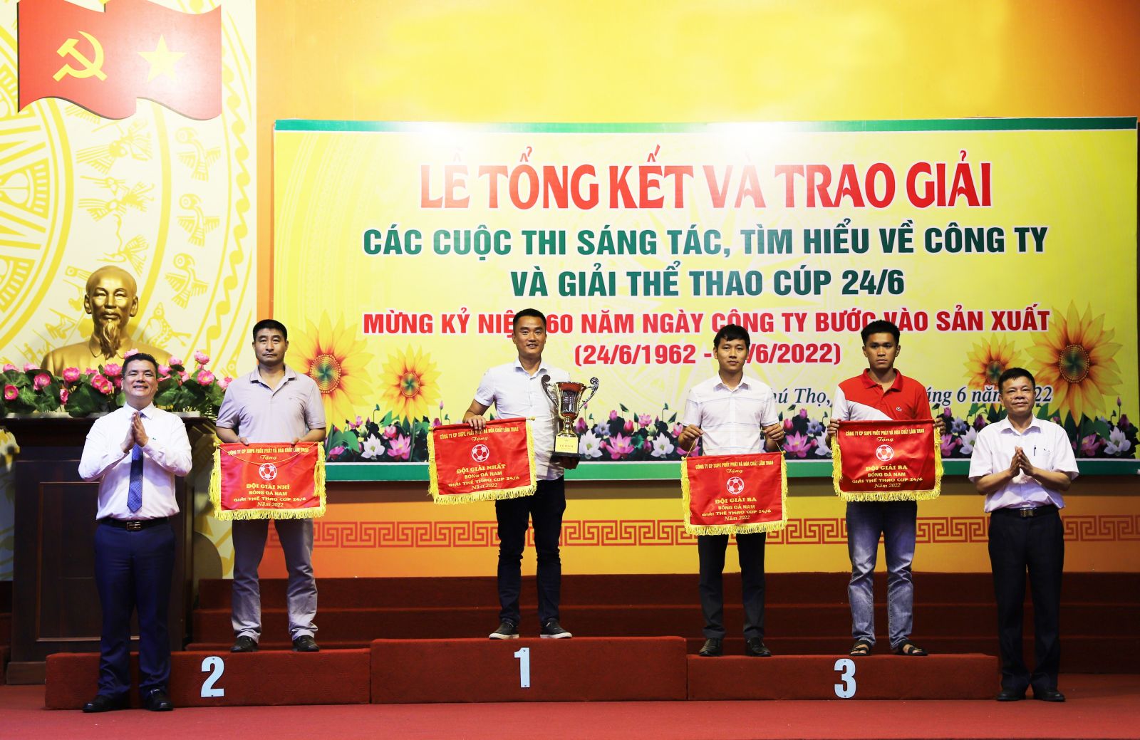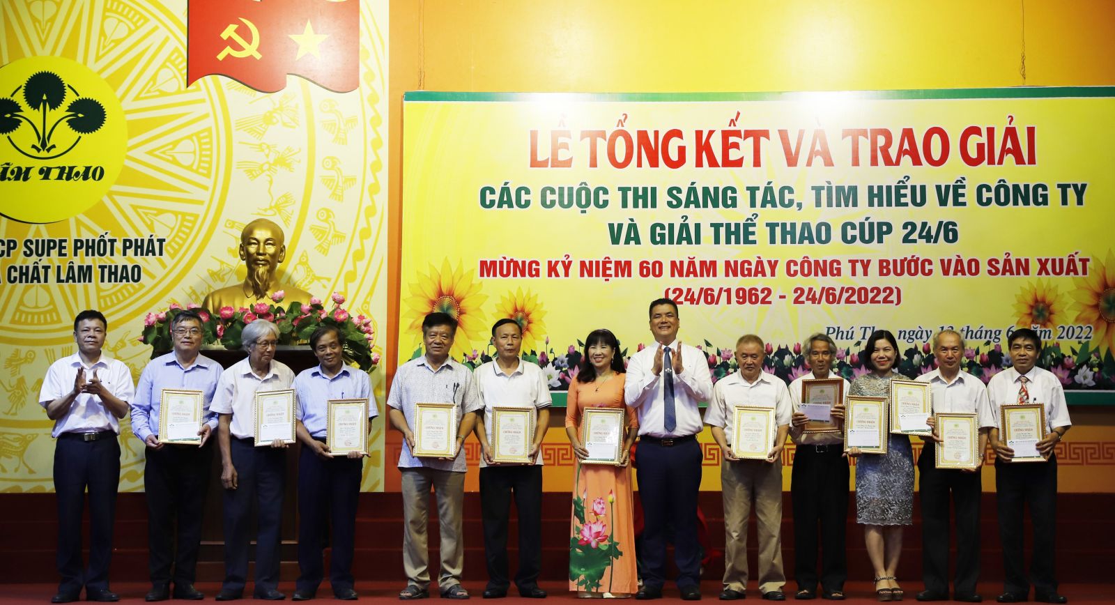 Chiều ngày 13/6/2022, tại Hội trường khu công nhân Supe, Công ty tổ chức Lễ tổng kết trao giải các cuộc thi sáng tác, tìm hiểu về Công ty và Giải thể thao Cúp 24/6/2022.