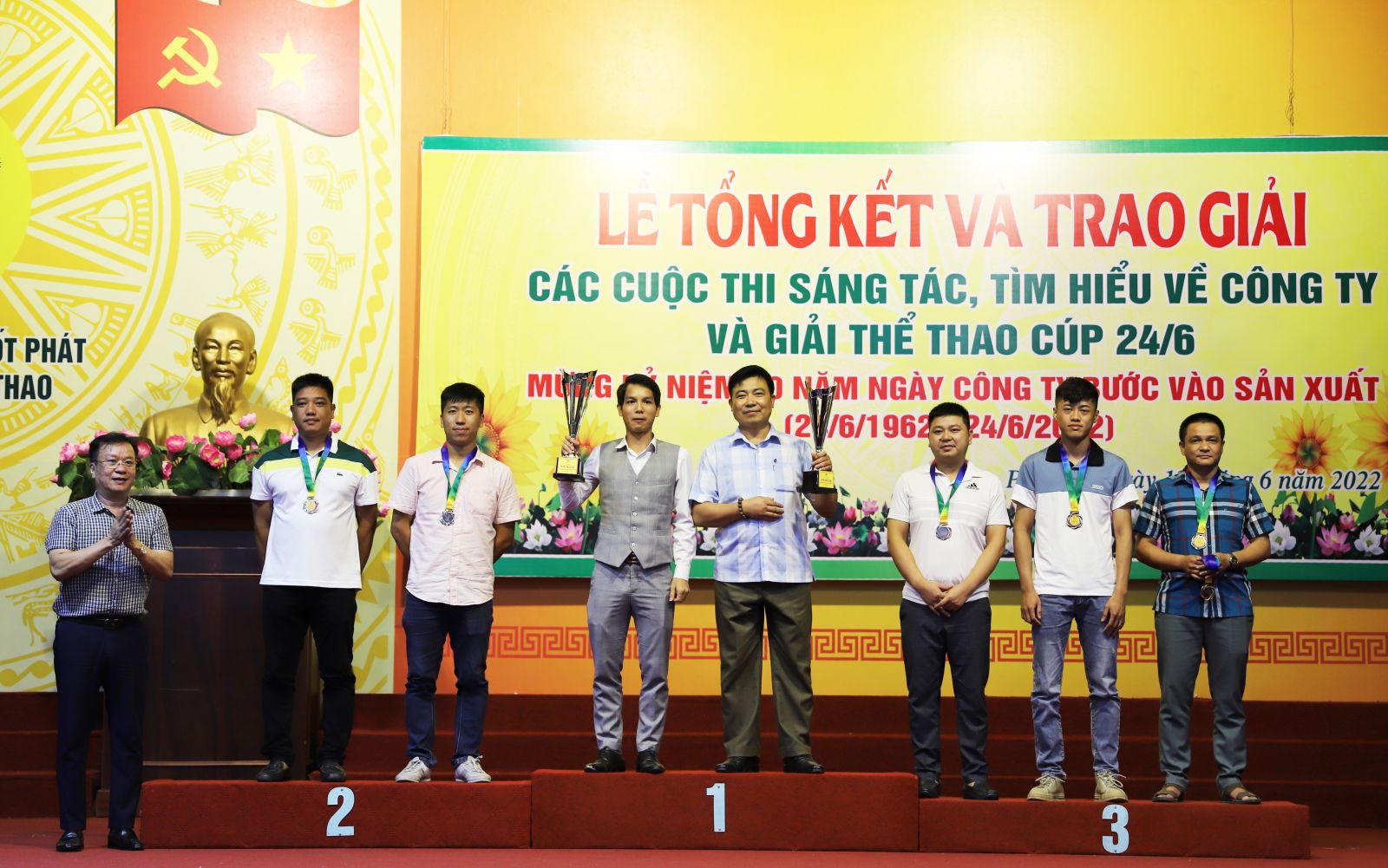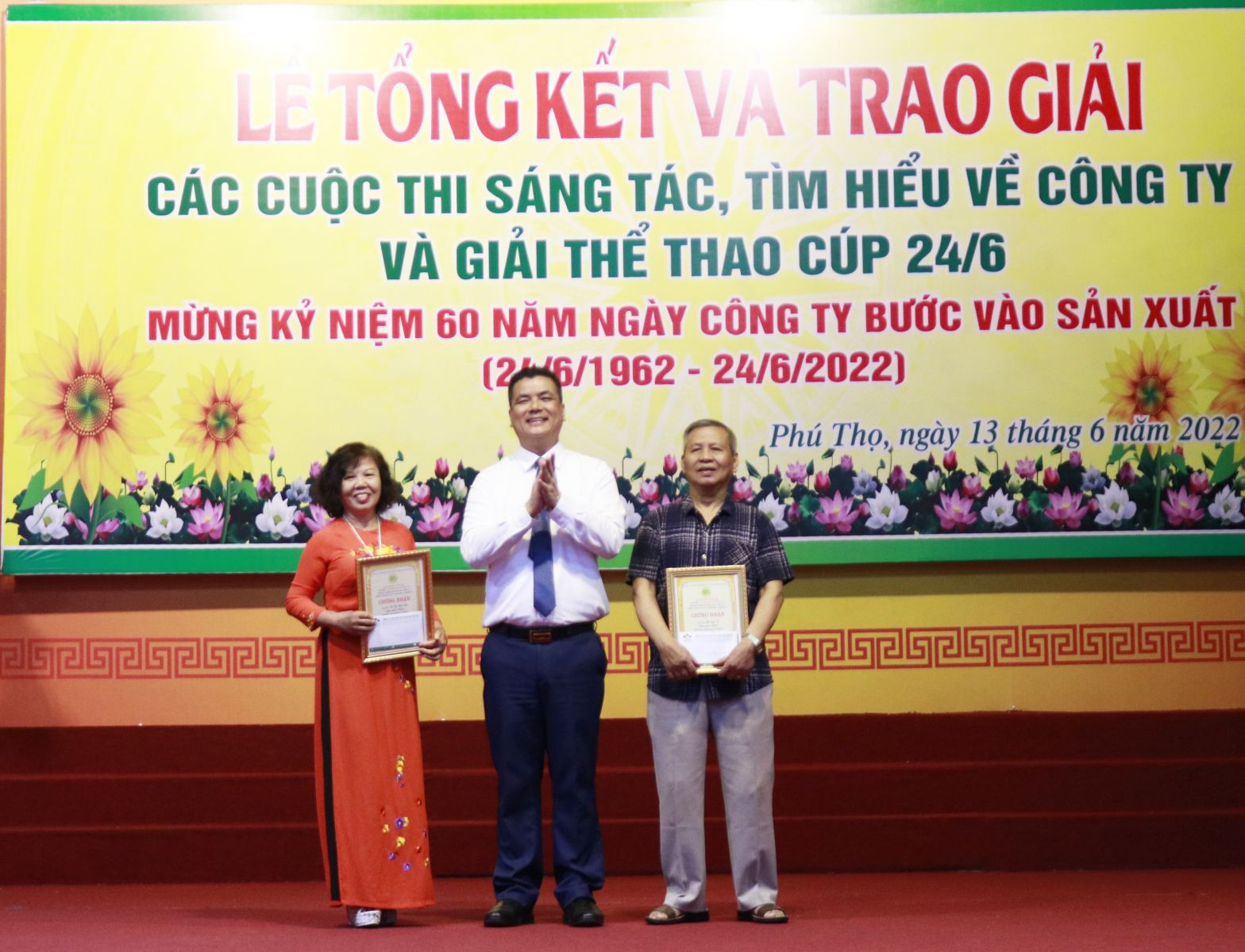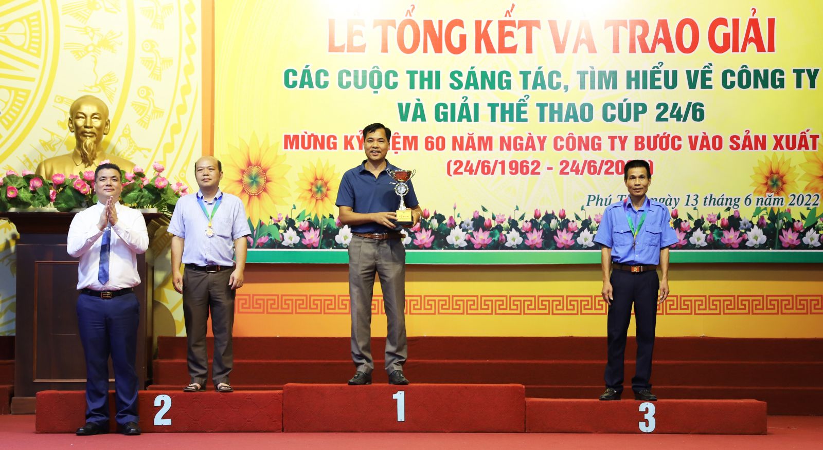 Chiều ngày 13/6/2022, tại Hội trường khu công nhân Supe, Công ty tổ chức Lễ tổng kết trao giải các cuộc thi sáng tác, tìm hiểu về Công ty và Giải thể thao Cúp 24/6/2022.