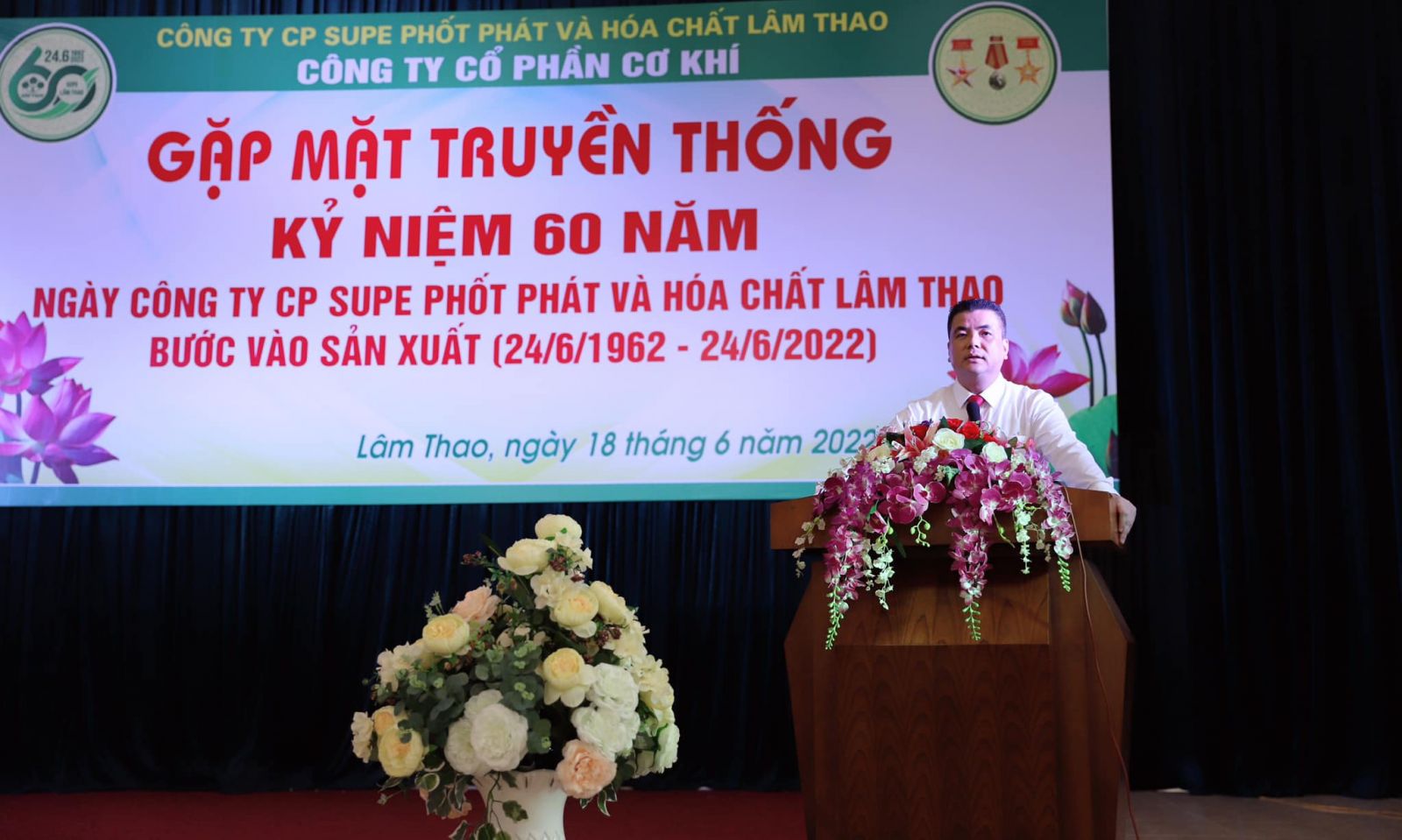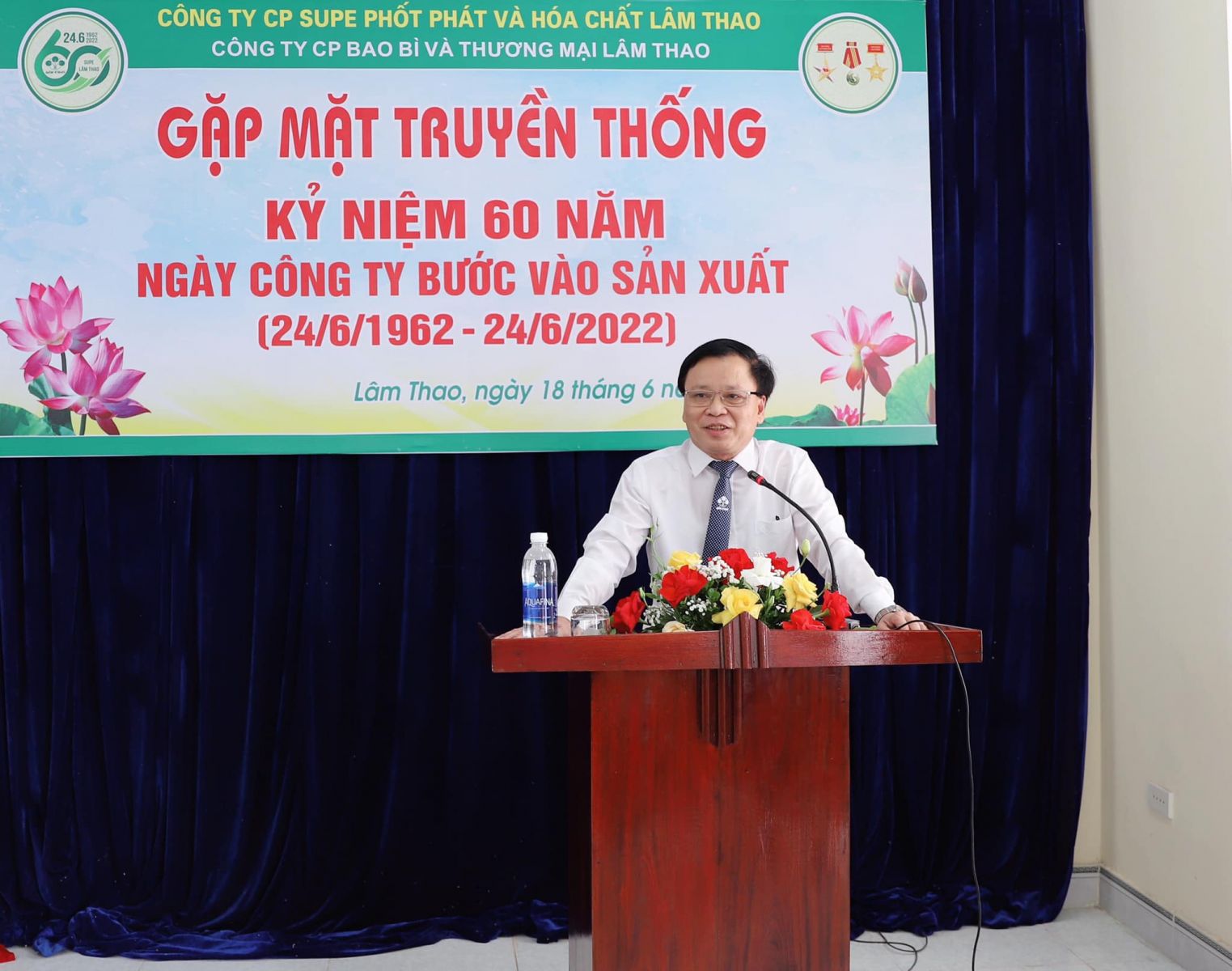 Phát biểu tại buổi gặp mặt các Công ty cổ phần, đồng chí Phạm Thanh Tùng cùng các đồng chí trong Ban Lãnh đạo Công ty đã ghi nhận, biểu dương và chân thành cảm ơn những cống hiến, đóng góp công sức, trí tuệ của các thế hệ cán bộ, công nhân viên các Công ty cổ phần đối với sự phát triển của Công ty CP Supe Phốt phát và Hóa chất Lâm Thao trong suốt 60 năm qua. Các đồng chí Lãnh đạo Công ty mong muốn trong thời gian tới tiếp tục nhận được sự đồng hành, hợp tác và chia sẻ của các thế hệ cán bộ, công nhân viên các Công ty cổ phần để góp phần đưa Công ty CP Supe Phốt phát và Hóa chất Lâm Thao phát triển bền vững.