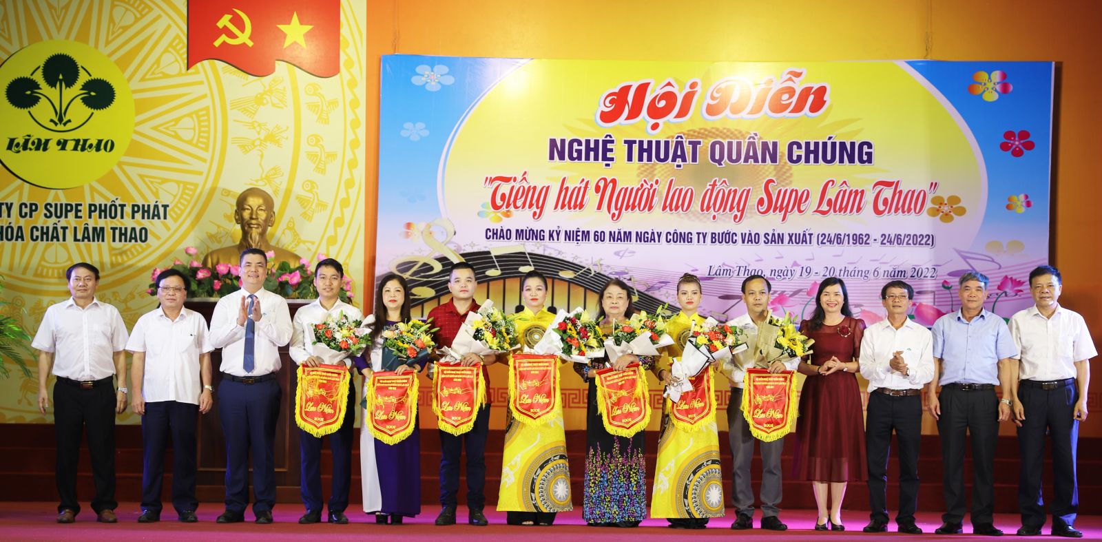 Trong chuỗi các hoạt động chào mừng kỷ niệm 60 năm ngày Công ty cố phần Supe Phốt phát và Hóa chất Lâm Thao bước vào sản xuất (24/6/1962-24/6/2022), 60 năm ngày Bác Hồ về thăm (19/8/1962-19/8/2022), tối ngày 19/6/2022, tại Hội trường khu công nhân Supe, Công ty tổ chức Hội diễn văn nghệ quần chúng với chủ đề “Tiếng hát người lao động Supe” chào mừng sự kiện này.