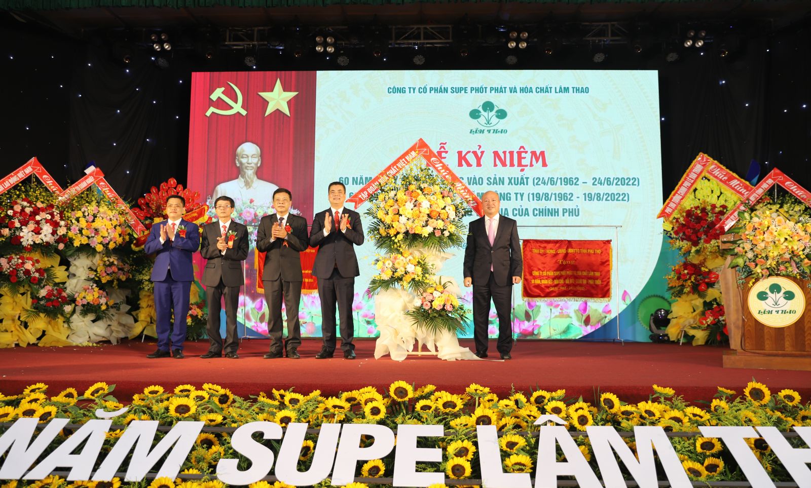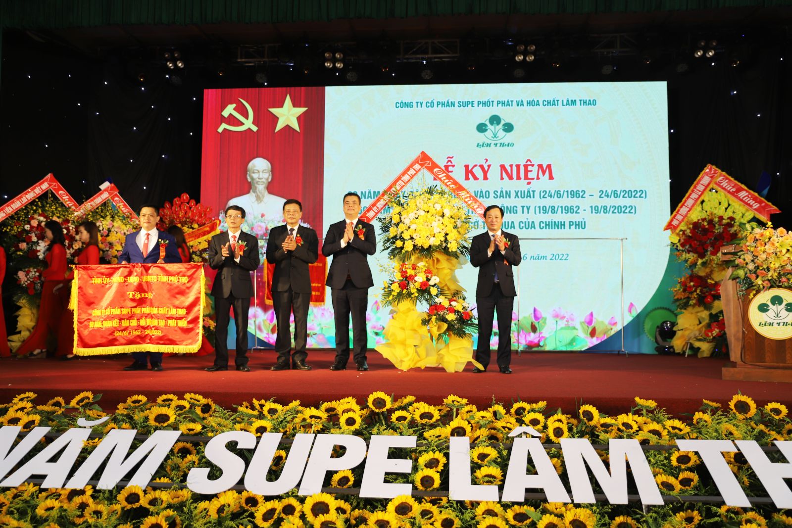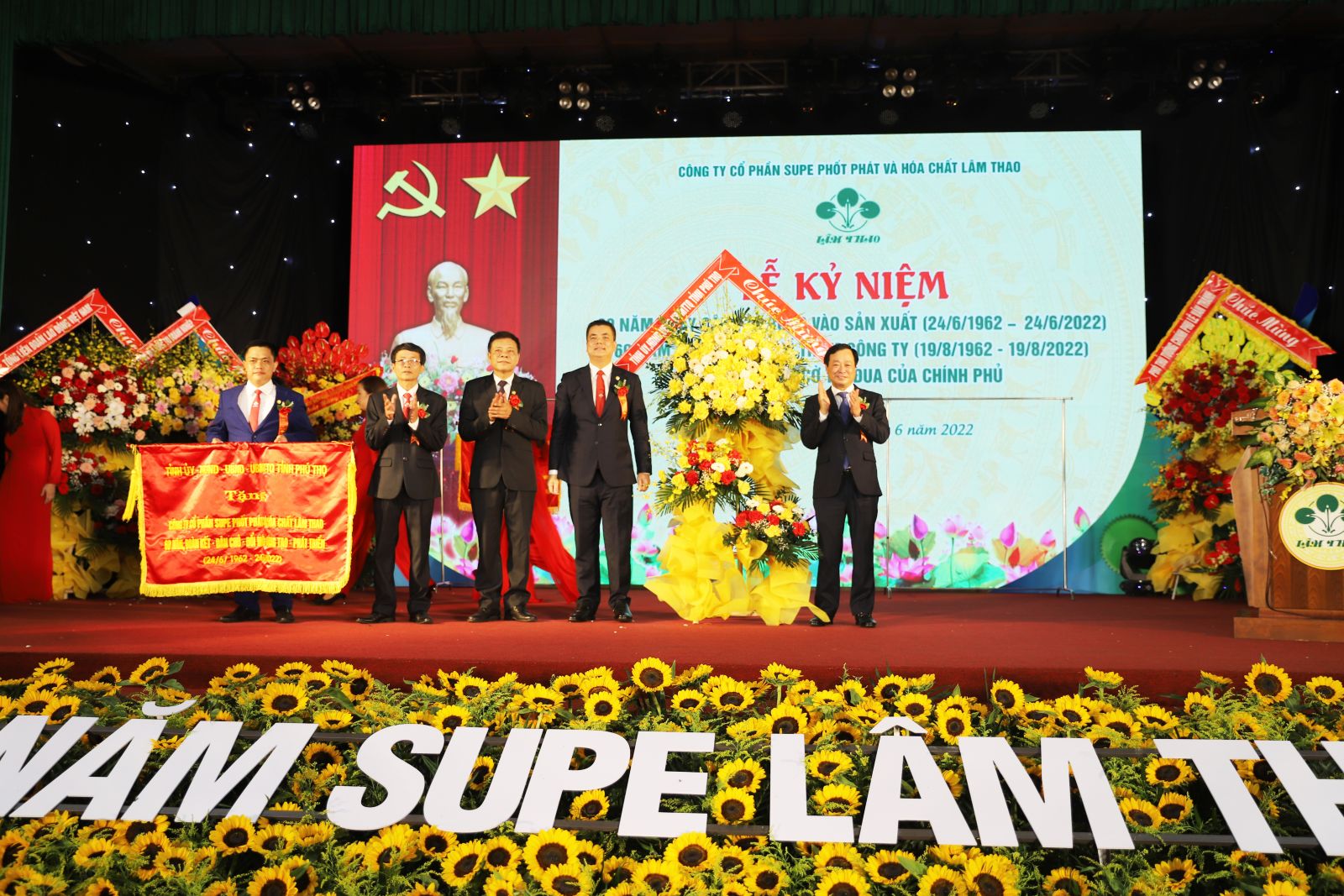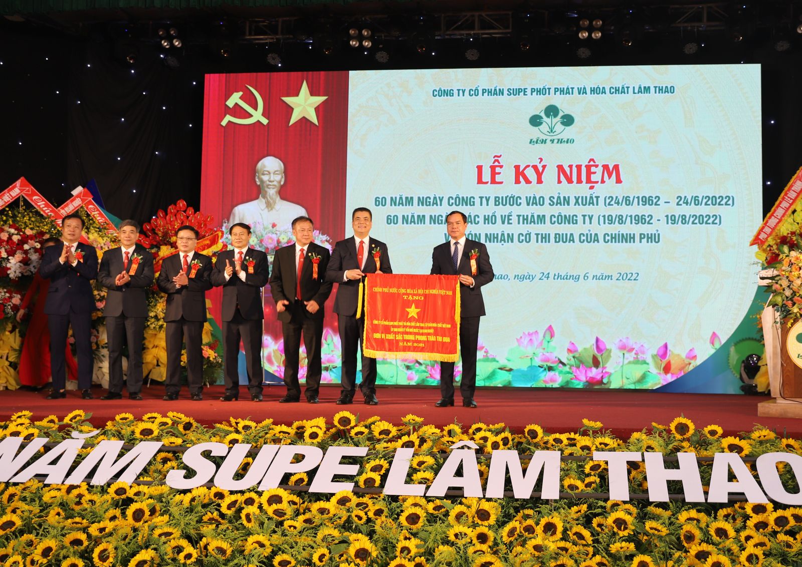 Sáng ngày 24/6/2022, tại Hội trường Khu công nhân Supe, Công ty CP Supe Phốt phát và Hóa chất Lâm Thao tổ chức trọng thể Lễ kỷ niệm 60 năm ngày bước vào sản xuất (24/6/1962 - 24/6/2022), 60 năm ngày Bác Hồ về thăm (19/8/1962 - 19/8/2022) và đón nhận Cờ thi đua của Chính phủ. Chương trình được truyền hình trực tiếp trên Website và Fanpage của Công ty.