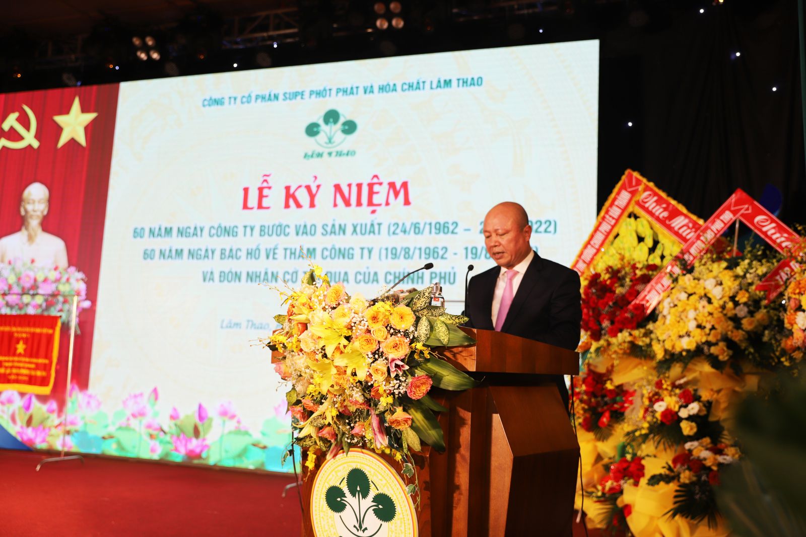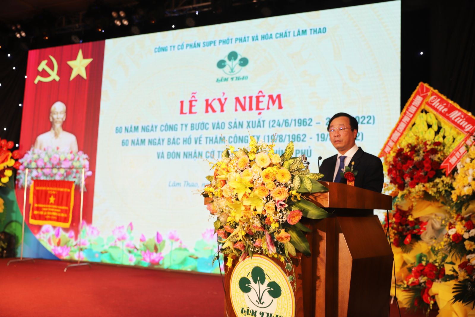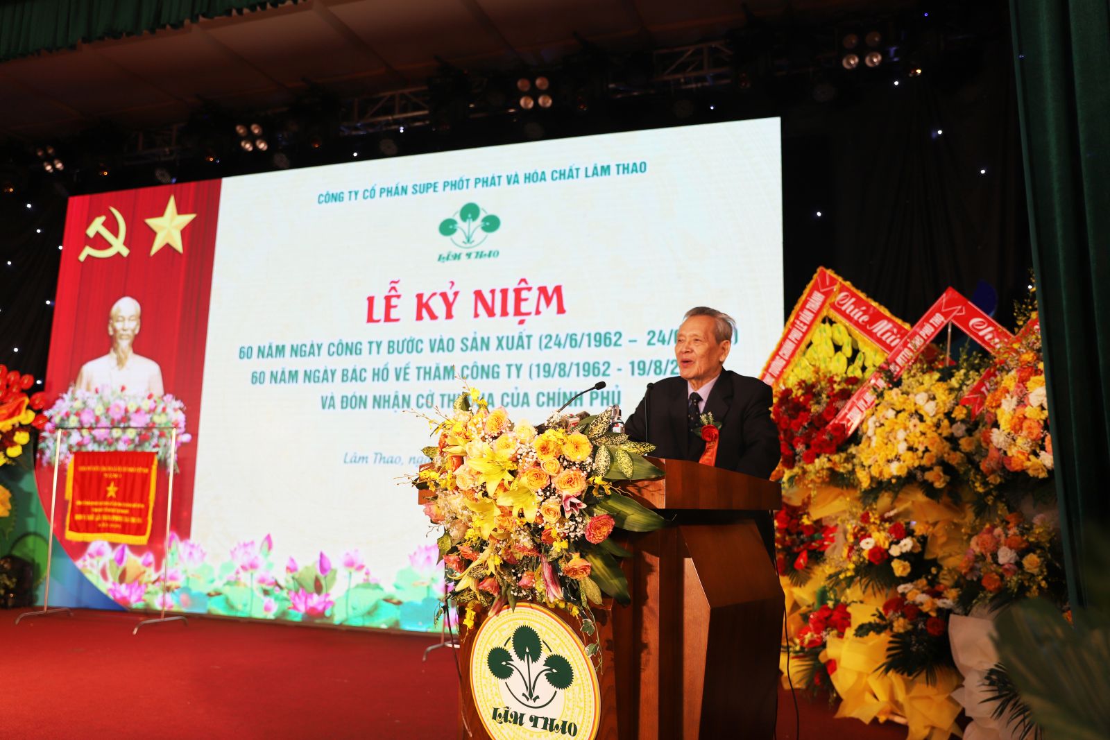 Tại buổi Lễ, thay mặt Lãnh đạo Công ty, đồng chí Phạm Thanh Tùng, Bí thư Đảng ủy, Tổng Giám đốc đã ôn lại truyền thống 60 năm xây dựng và phát triển của Công ty. Theo đó, hơn nửa thế kỷ trôi qua với biết bao đổi thay, với sự nỗ lực lao động sáng tạo không ngừng của tập thể cán bộ, công nhân Công ty qua nhiều thế hệ, đã tạo nên bề thế và dáng vóc của Supe Lâm Thao hôm nay: Một trong những doanh nghiệp lớn nhất cả nước về sản xuất phân bón, đơn vị 3 lần được Nhà nước trao tặng danh hiệu Anh hùng, Huân chương Hồ Chí Minh, cùng nhiều phần thưởng cao quý khác. Đây là dịp để cùng nhau ôn lại truyền thống 60 năm xây dựng và trưởng thành của Supe Lâm Thao, đồng thời bày tỏ lòng tri ân tới các thể hệ cán bộ, công nhân qua các thời kỳ đã dày công đóng góp trí tuệ, công sức xây dựng Công ty; đặc biệt, đồng chí Tổng Giám đốc bày tỏ lời cảm ơn sâu sắc về sự quan tâm, chỉ đạo, tạo điều kiện của Đảng, Nhà nước, Bác Hồ; các cơ quan ban ngành đoàn thể từ Trung ương đến địa phương; khách hàng trên khắp mọi miền đất nước đã đồng hành, ủng hộ cho hoạt động của Công ty trong suốt những năm qua.