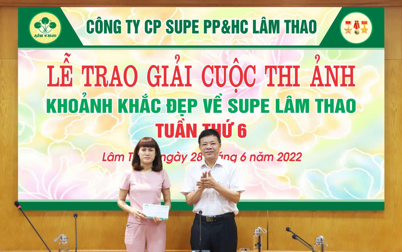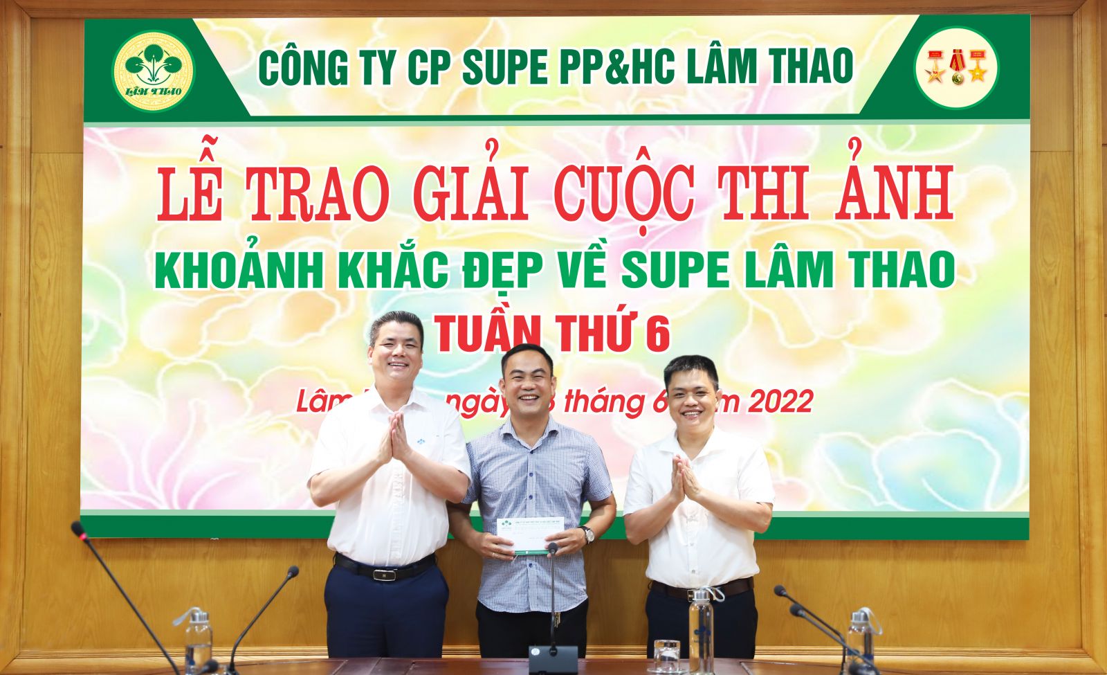 Thay mặt Ban Lãnh đạo Công ty phát biểu tại buổi trao giải tuần cuối Cuộc thi ảnh “Khoảnh khắc đẹp về Supe Lâm Thao”, đồng chí Phạm Thanh Tùng, Bí thư Đảng ủy, Tổng Giám đốc chúc mừng các tác giả đoạt giải và đồng thời khẳng định, các tác giả tham gia cuộc thi này đều đã dành những tình cảm, sự quan tâm sâu sắc tới Công ty cổ phần Supe Phốt phát và Hóa chất Lâm Thao nhân dịp kỷ niệm 60 năm ngày bước vào sản xuất (24/6/1962-24/6/2022), 60 năm ngày Bác Hồ về thăm (19/8/1962-19/8/2022). Đồng chí Tổng Giám đốc Công ty cảm ơn tất cả các tác giả đã nhiệt tình tham gia, đồng hành và góp phần tạo nên thành công của cuộc thi ảnh trong các tuần qua.