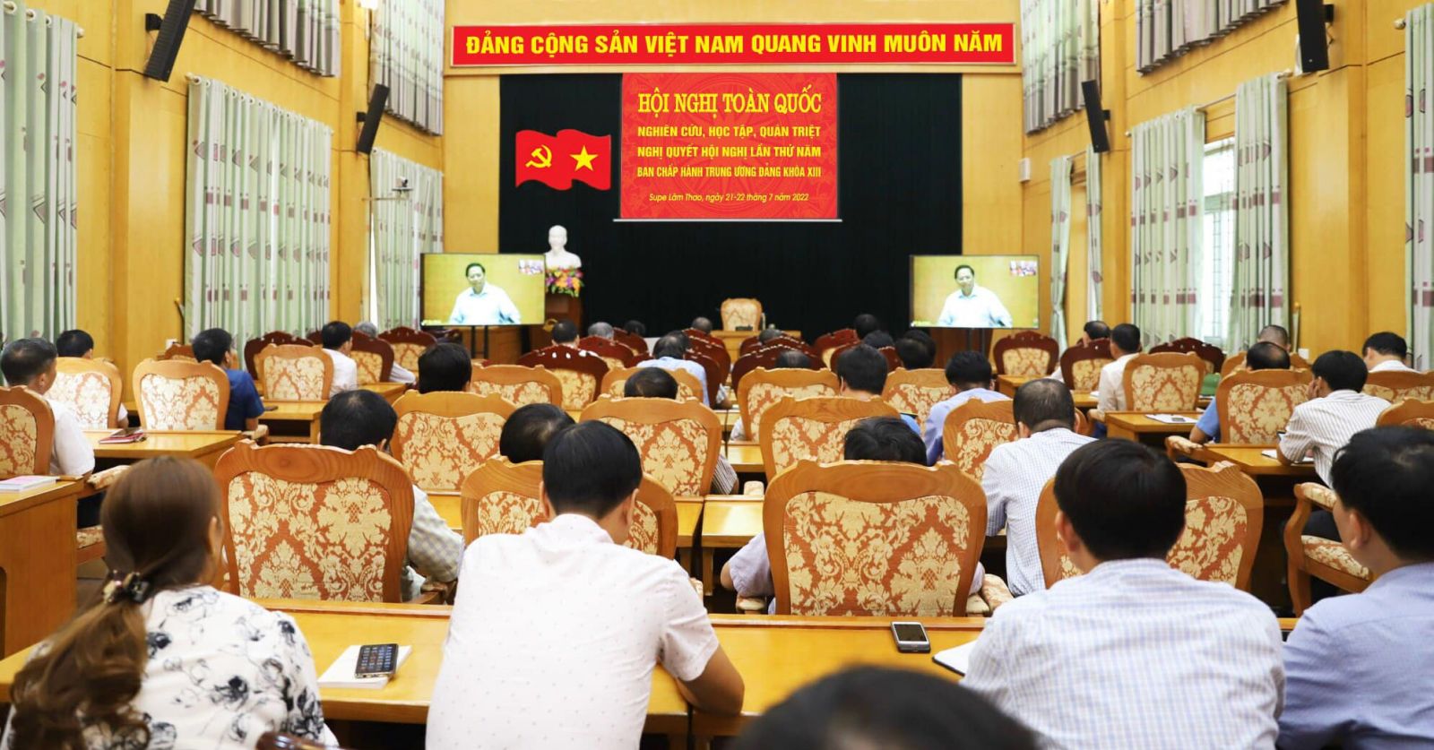 Sáng ngày 21 tháng 7 năm 2022, Bộ Chính trị, Ban Bí thư Trung ương Đảng tổ chức Hội nghị toàn quốc nghiên cứu, học tập, quán triệt Nghị quyết Hội nghị lần thứ năm, Ban Chấp hành Trung ương Đảng khóa XIII. Hội nghị được tổ chức theo hình thức trực tiếp tại Nhà Quốc hội và trực tuyến tới các điểm cầu ở các ban, bộ, ngành Trung ương và 63 Tỉnh ủy, Thành ủy trực thuộc Trung ương; các huyện, thành, thị và các Đảng bộ trực thuộc Tỉnh ủy Phú Thọ.